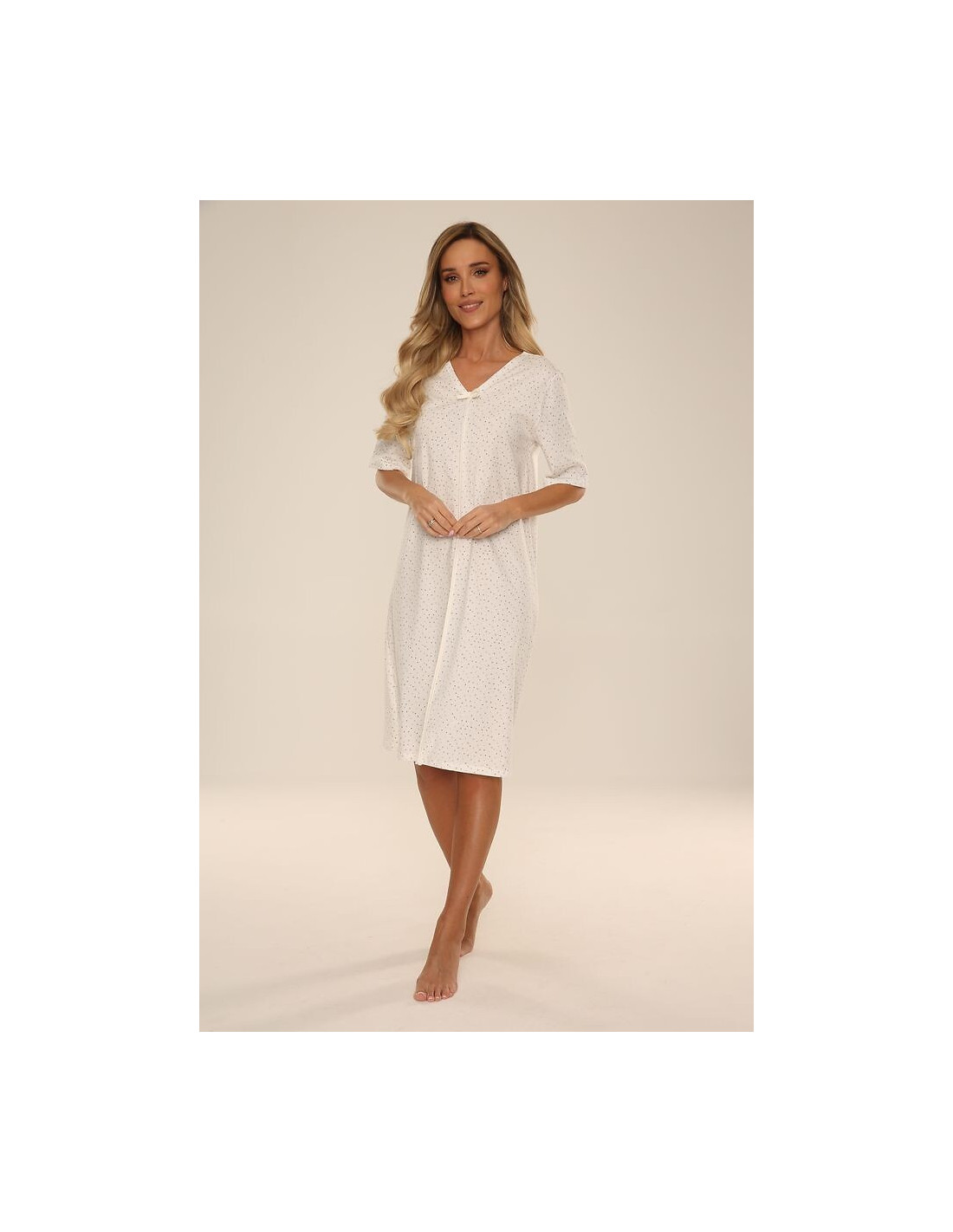 Kišeninė lova (Koszula nocna) - z wysokiej kokybės bawełny - krótki rękaw - material w drobne gwiazdki - dekolt w kształcie litery "V", zdobiony kokardką - długość do kolana