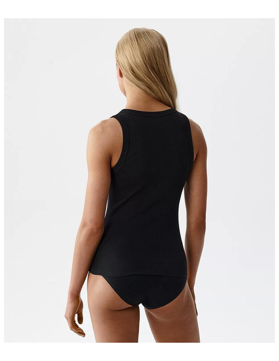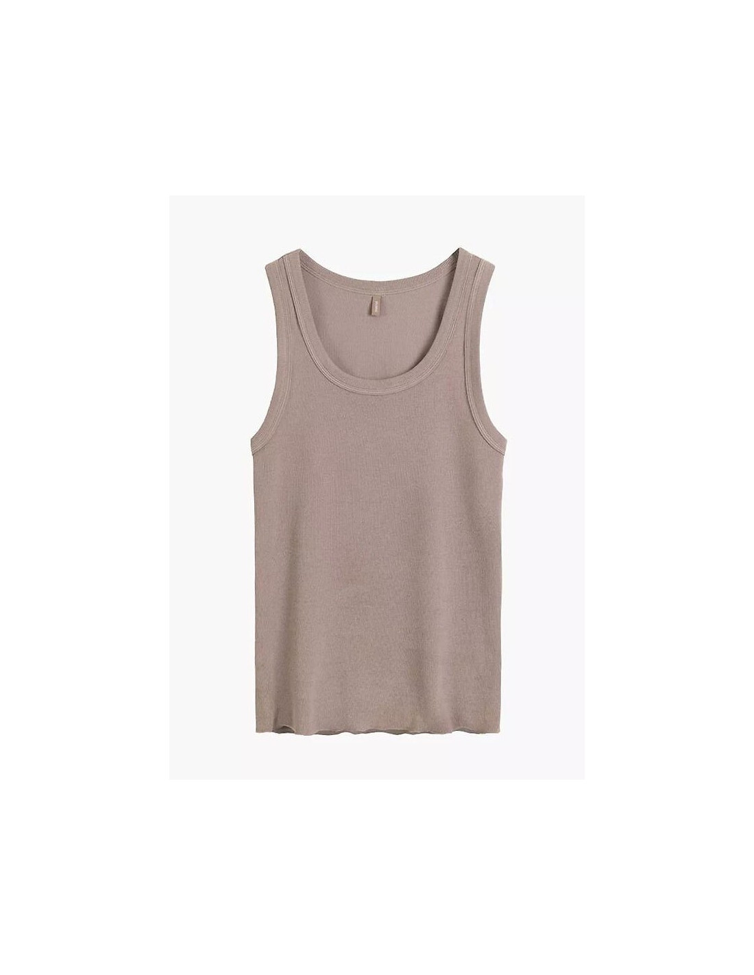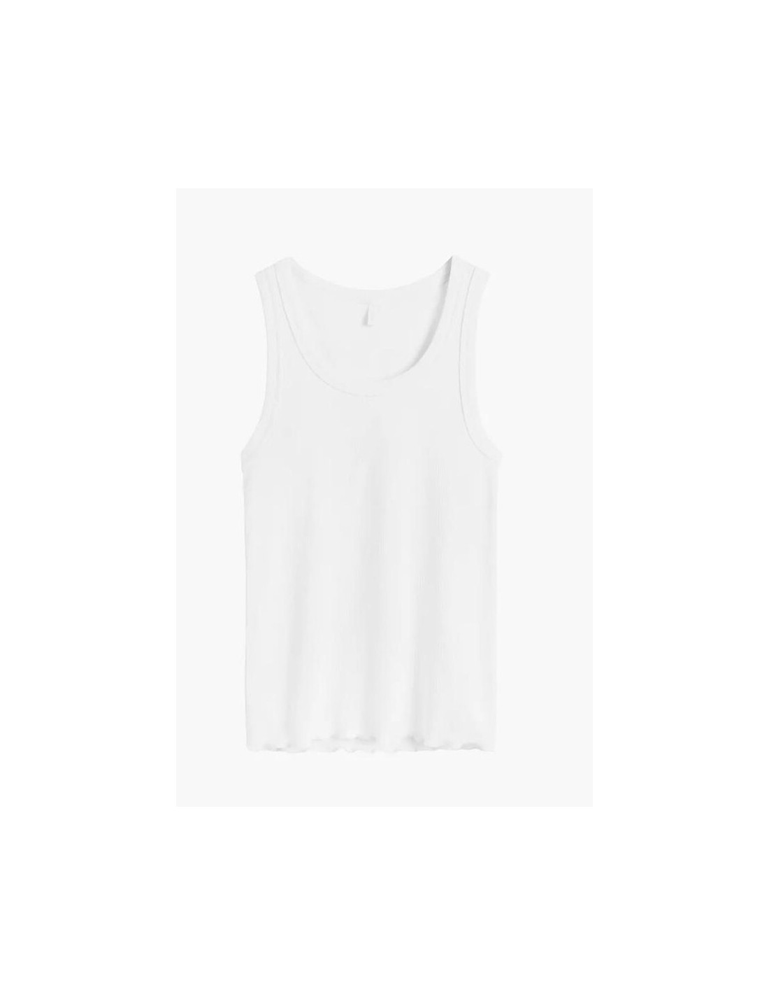Koszulka damska - miękka dzianina w drobny prążek - sportowy krój - szerokie ramiączka - dół koszulki zakończony falbankowym obszyciem