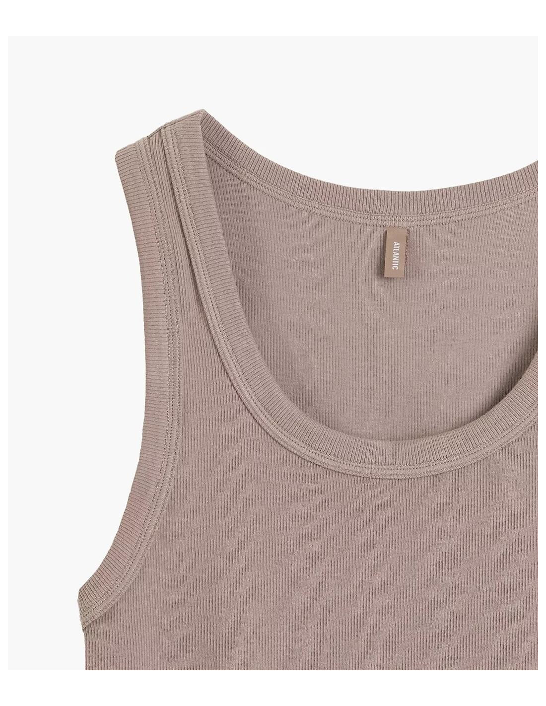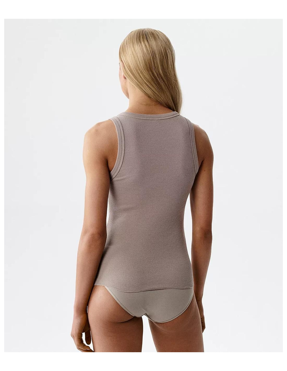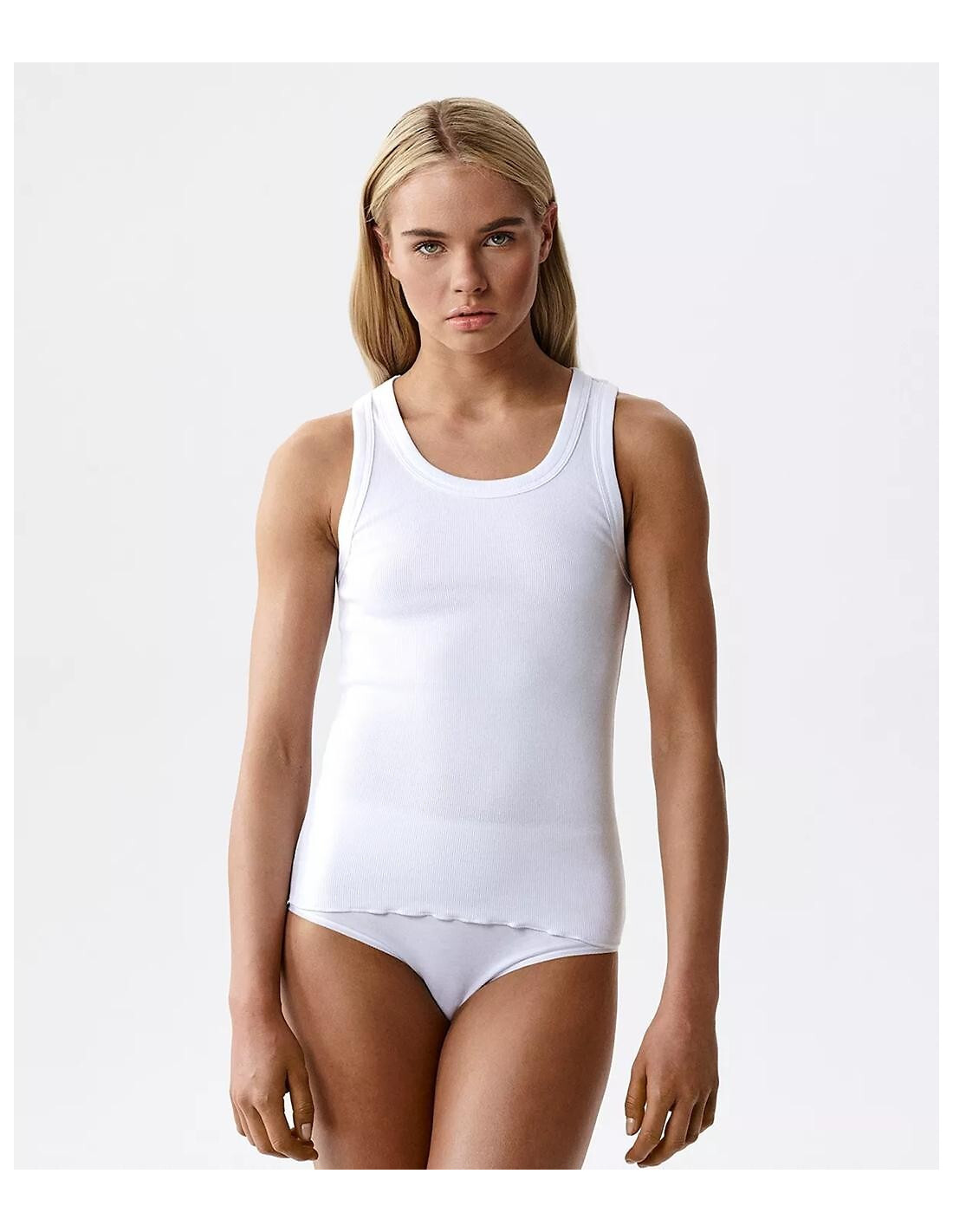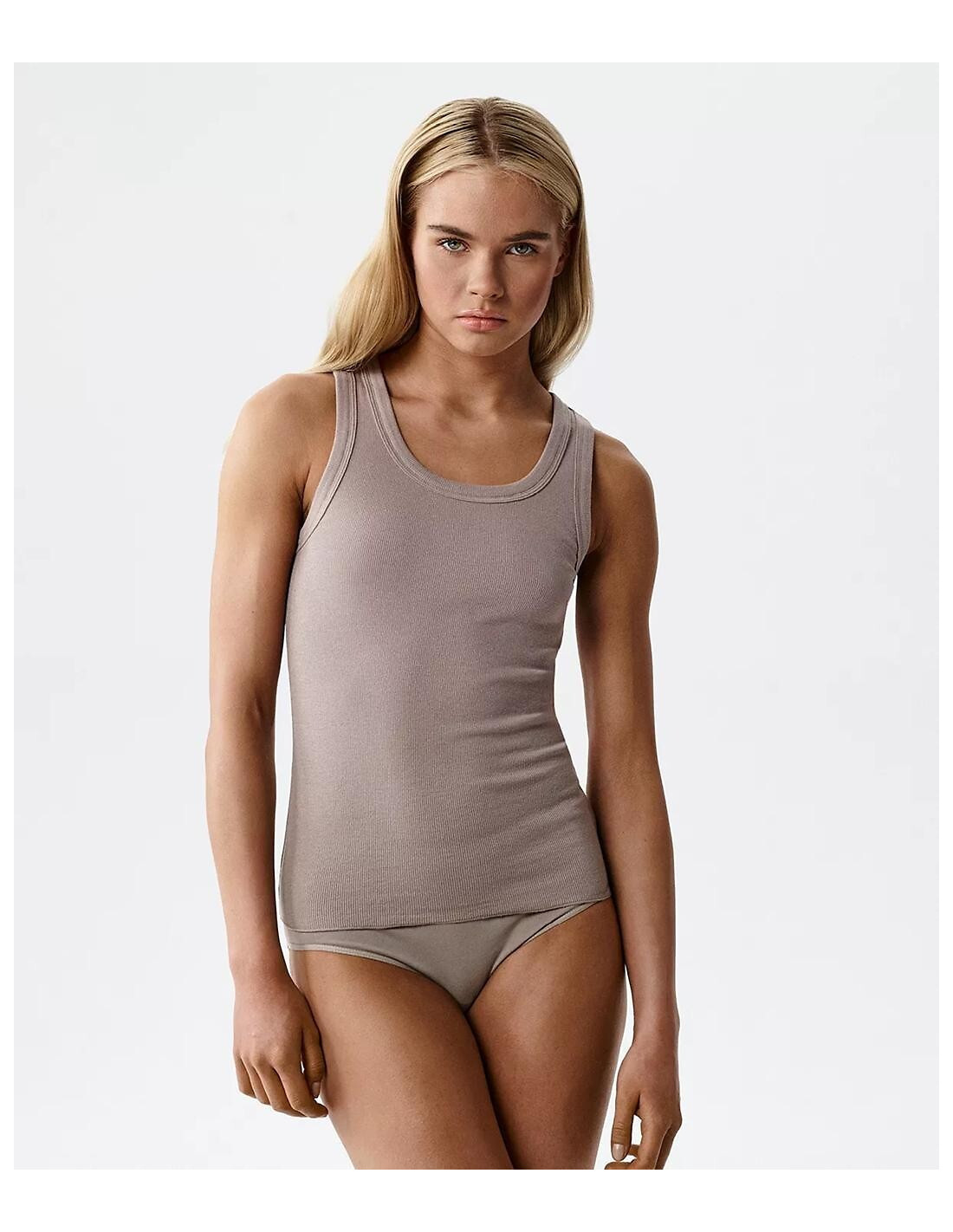 Koszulka damska - miękka dzianina w drobny prążek - sportowy krój - szerokie ramiączka - dół koszulki zakończony falbankowym obszyciem