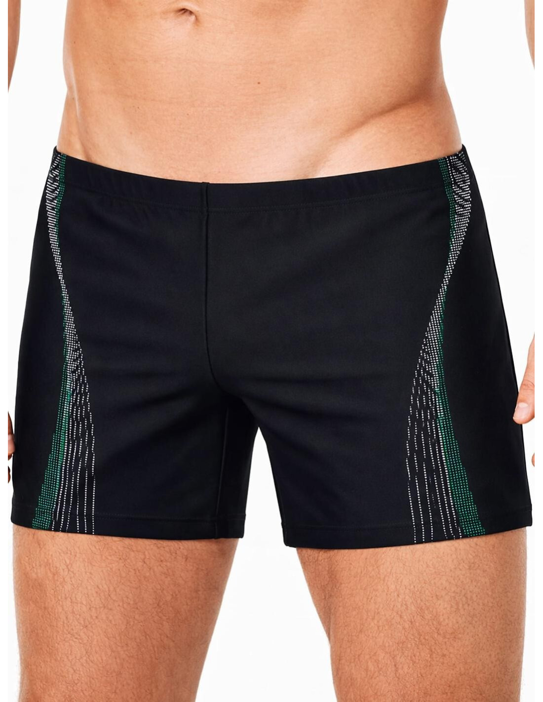 Kąpielówki męskie - aukštos kokybės mikrofibra - z przodu kontrastujący nadruk - nuo vidaus pusės przód podszyty siateczką - elastyczny pas ze sznurkiem do regulacji obwodu - idealiai przylegają do ciała