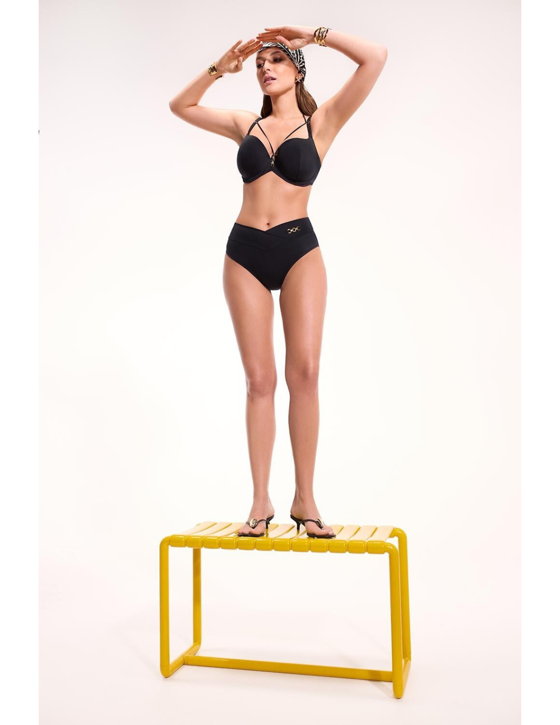 Modelis SK 253 to perfekcyjne połączenie zmysłowego designu i precyzji- biustonosz w konstrukcji HALF CUP delikatnie odsłania górną część biustu, zapewniając kartu doskonałe uniesienie i stabilne podtrzymanie, nawet przy większych rozmiarach- usztywniane, formowane miseczki pięknie zaokrąglają biust, nadając mu kuszący kształt- regulowane ramiączka zdobią delikatne paski tworzące efektowną linię przy dekolcie, podkreślając jego kształt i dodając stylizacji elegancji- między miseczkami znajduje się subtelna, złota ozdoba w formie biżuteryjnego łańcuszka - luksusowy akcent przyciągający wzrok- dodatkowe wiązanie na szyi z cienkich paseczków wpisuje się w aktualne plażowe trendy