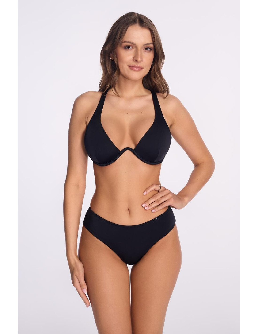 Biustonosz kąpielowy tipo minkštas - miękkie miseczki bez usztywnienia, bez fiszbin - wiązanie na plecach - ramiączka regulowane
