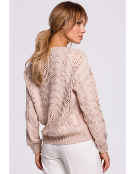M510 Ažūrinis džemperis su V formos iškirpte -...