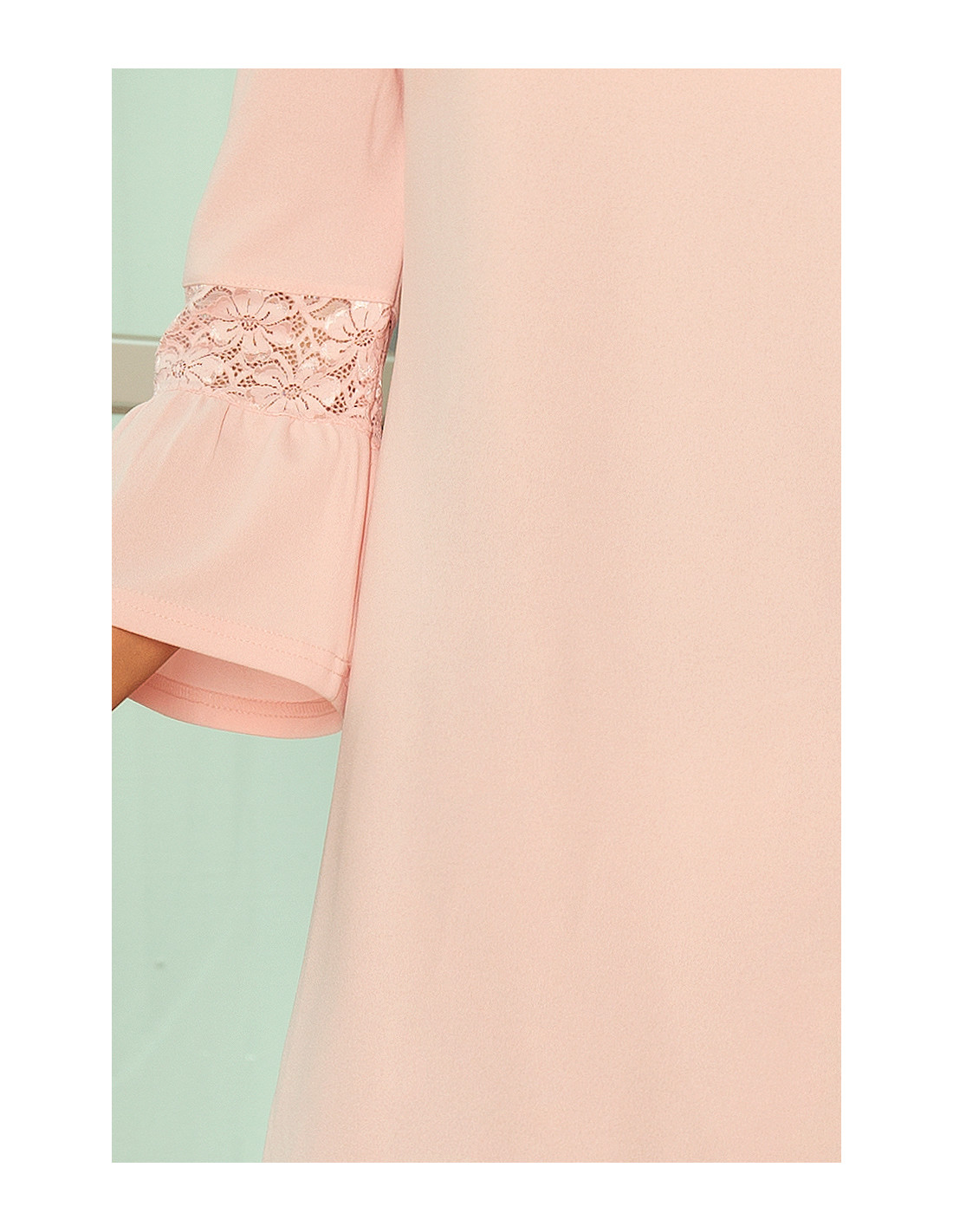 - Puošni ir elegantiška suknelė su platėjančiomis, dekoratyviomis rankovėmis;