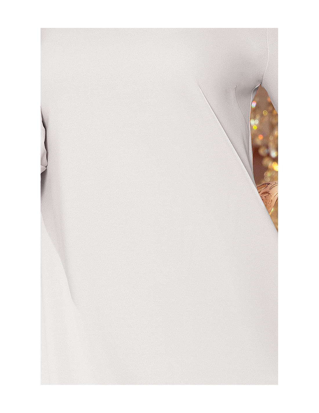 - Elegantiška, šviesiai pilkos spalvos suknelė dekoruota plačiomis rankovėmis ir sluoksniuotu sijonėliu;
