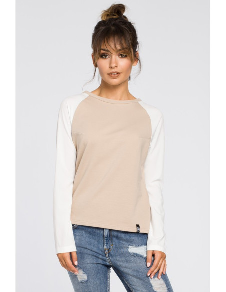 B047 Elegantiška megzta moteriška palaidinė - smėlio spalvos