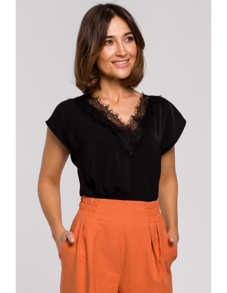 S206 Juodos spalvos palaidinė be rankovių su nėriniuota iškirpte