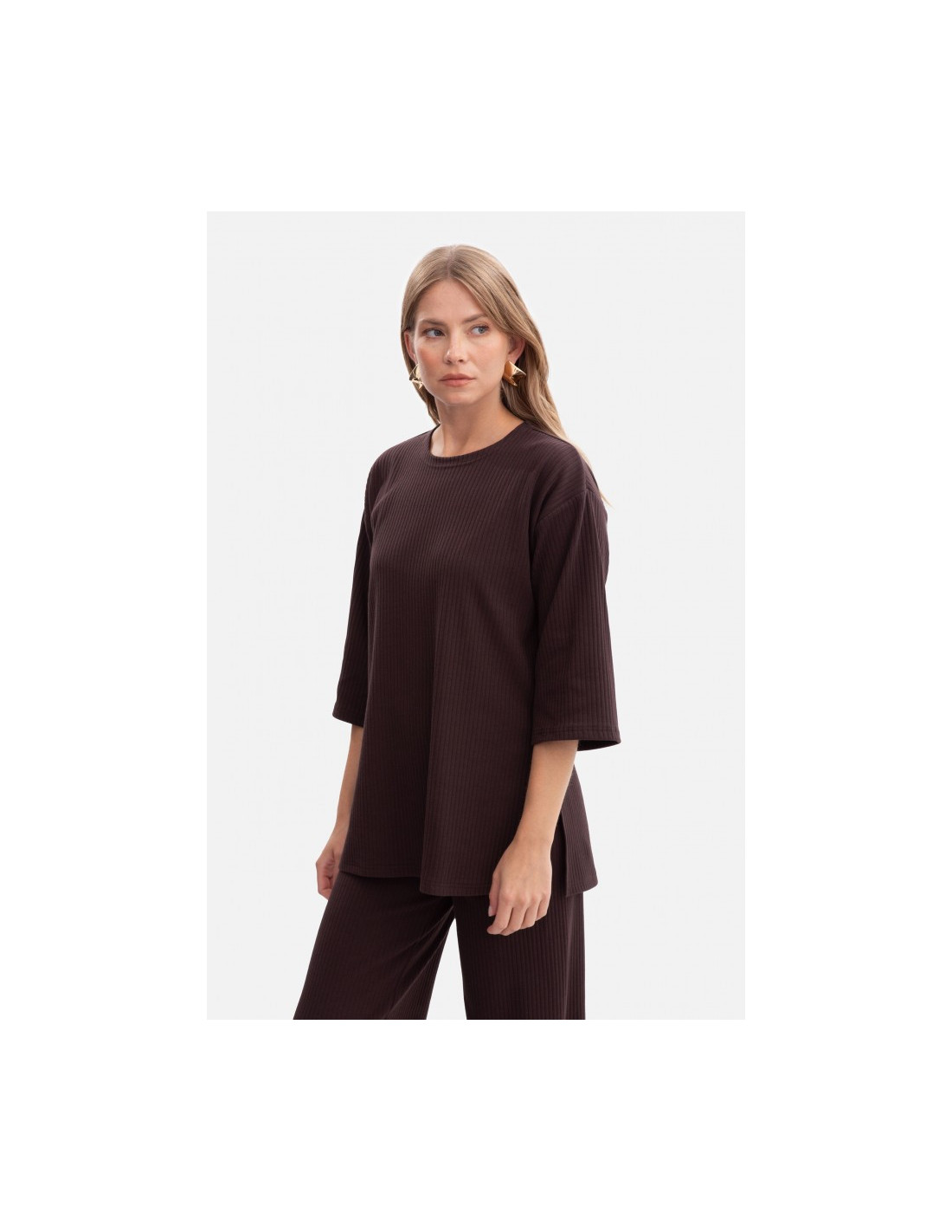 Palaidinės M792 Twisted strap top - cocoa MOE MO_13385 92% cotton 8% elastanase PRODUCT INFORMATION: knit fabric twisted shoulder strap top V-shaped neckline in the front and a plunging V-neck in the back pulled over the head decorative logo badge in the back unlined our model is 171 cm tall and wears size S designed and made in Poland Į krepšelį
