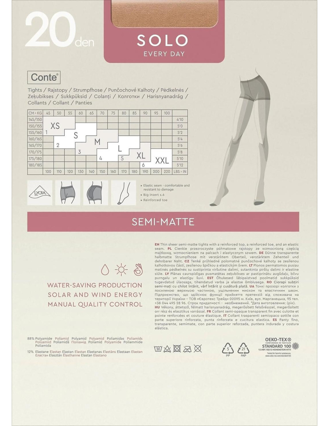 Klasikinės, lygios pėdkelnės - storis 20 denjė - pusiau matinės -užtikrina komfortą ir patogumą naudojant -pažymėta kelnaičių dalis - sutvirtinimas ant pirštų galiukų - idealiai tinka kasdieniam stiliui