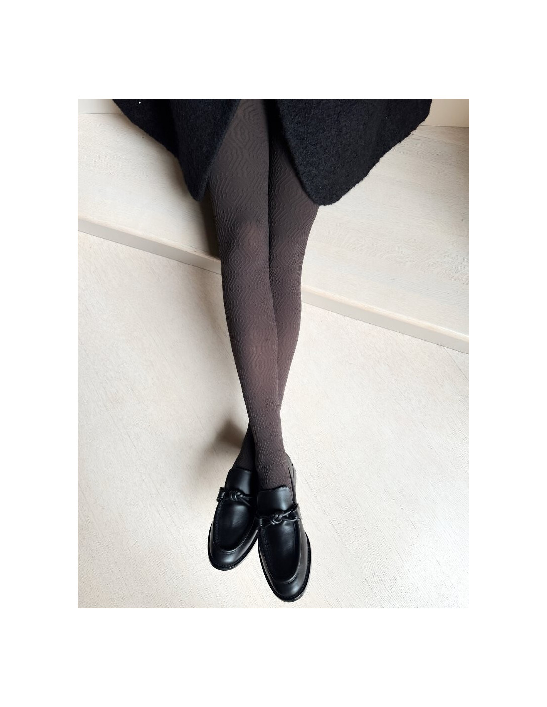 Moteriškos pėdkelnės 60 den - minkštas, elastingas mikropluoštas - geometrinis rombų raštas - didelis tarpkojis - patogus nespaudžiantis juosmuo