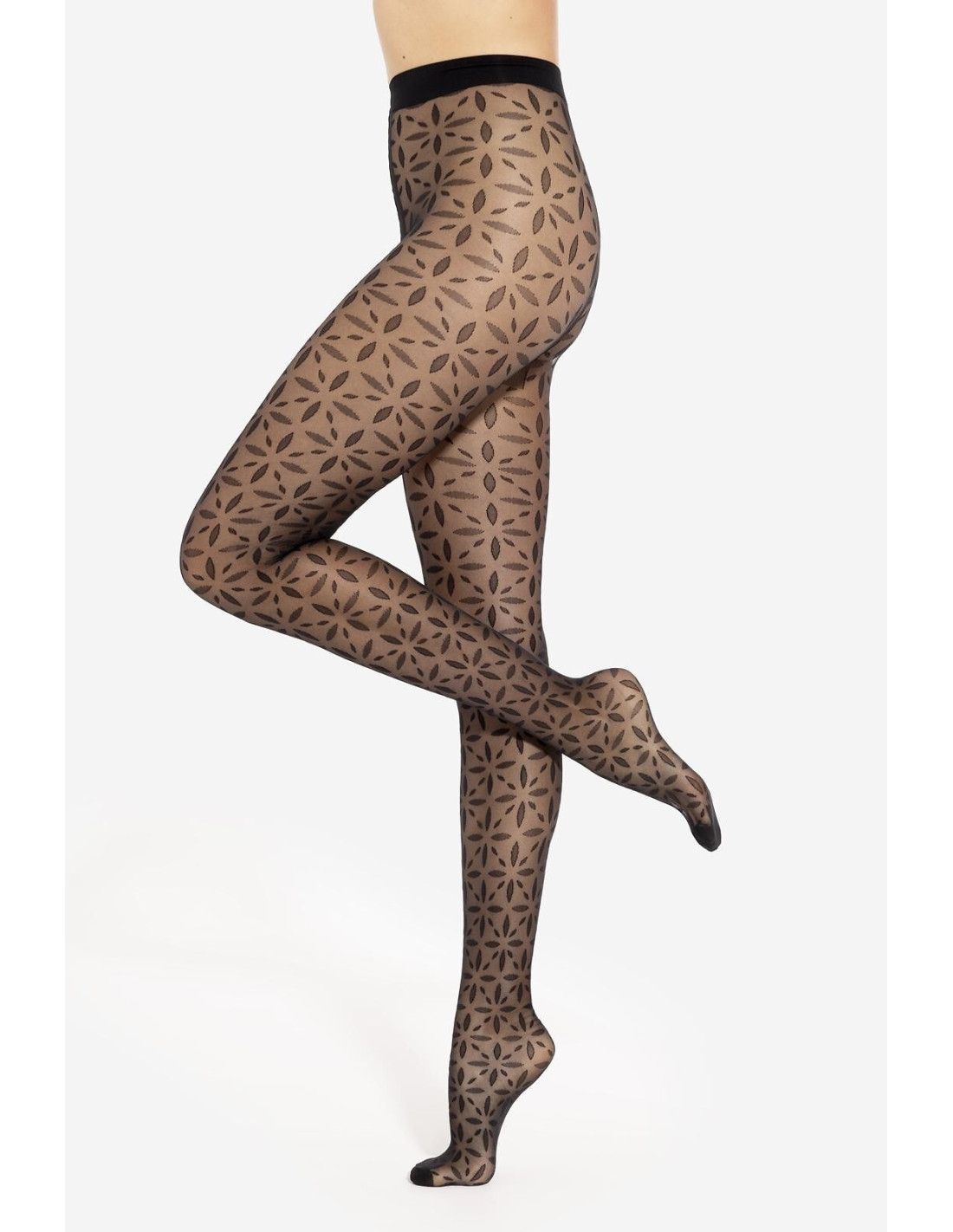 Rajstopy damskie, 20 den - wykonane z przędzy tipo elastan oplatany - matowe - efektowny wzór - wzmocnienia na palcach - bez zaznaczonej części majteczkowej - mały klin