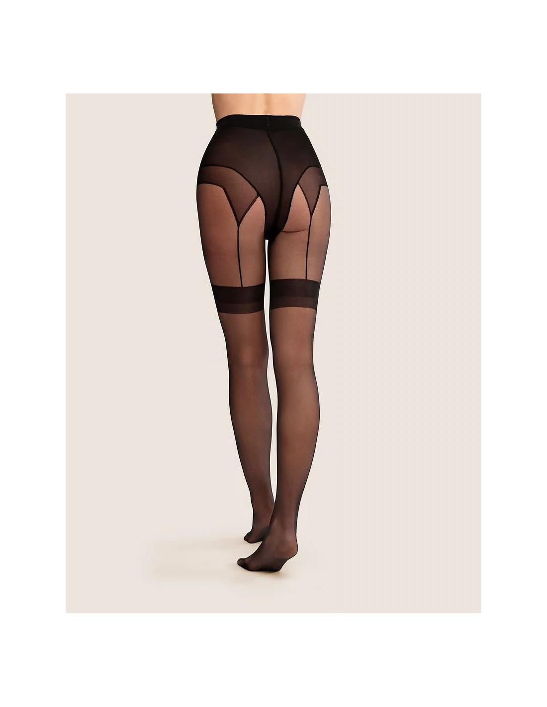 Rajstopy Anaya to model, kuris łączy klasykę cienkich rajstop z zmysłowym wyglądem pończoch do pasa - transparentna dzianina 20 den delikatnie otula nogi -wyraźne pasy na udach imitują mocowanie pończoch, tworząc stylowy efekt - to propozycja dla kobiet, które lubią eleganckie detale w nowoczesnym wydaniu - efekt imitujący pończochy do pasa - rajstopy dopasowują się do nóg i zapewniają komfort noszenia - Cienka dzianina jest miękka i sprężysta, dzięki czemu estetycznie układa się na sylwetce - brak wydzielonej części majteczkowej - niewidoczne wzmocnienie na palcach