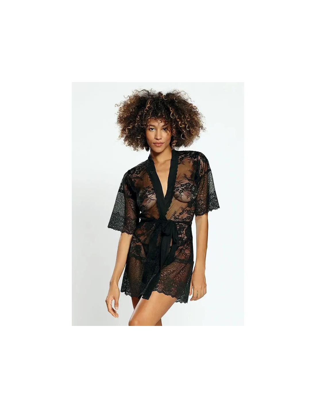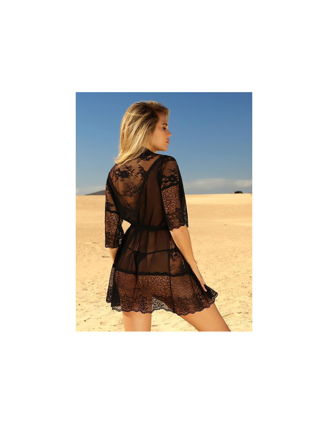 Seksualus moteriškas apatinis trikotažas ir (arba) chalatas - su trumpomis rankovėmis - pagamintas iš švelnių nėrinių ir tinklelio - surišamas per liemenį - stringų rinkinys
