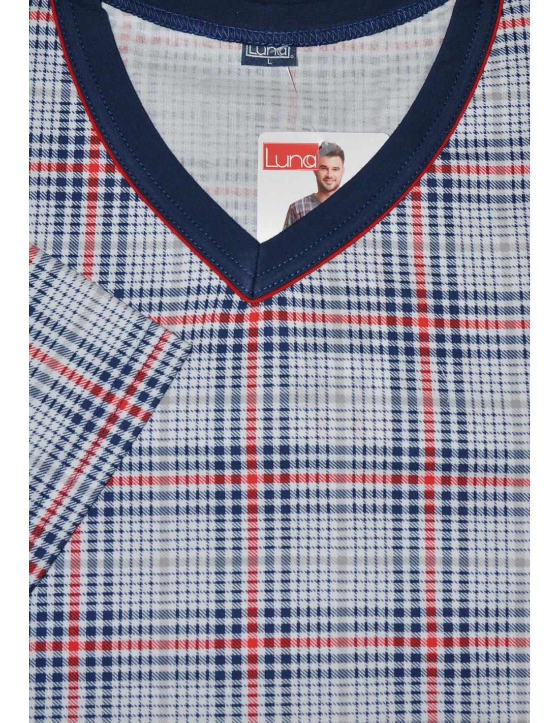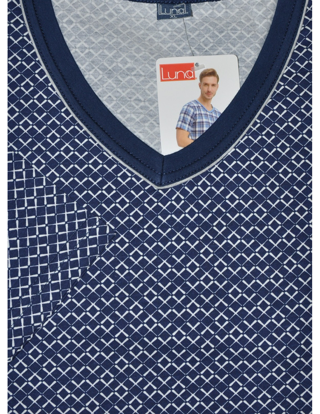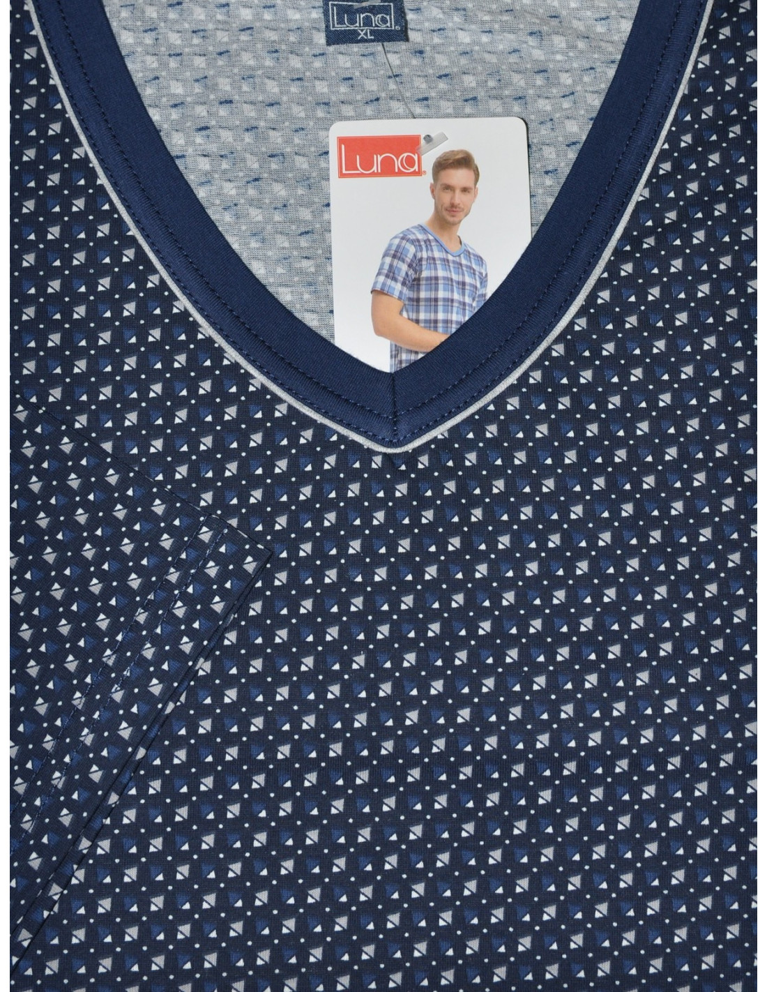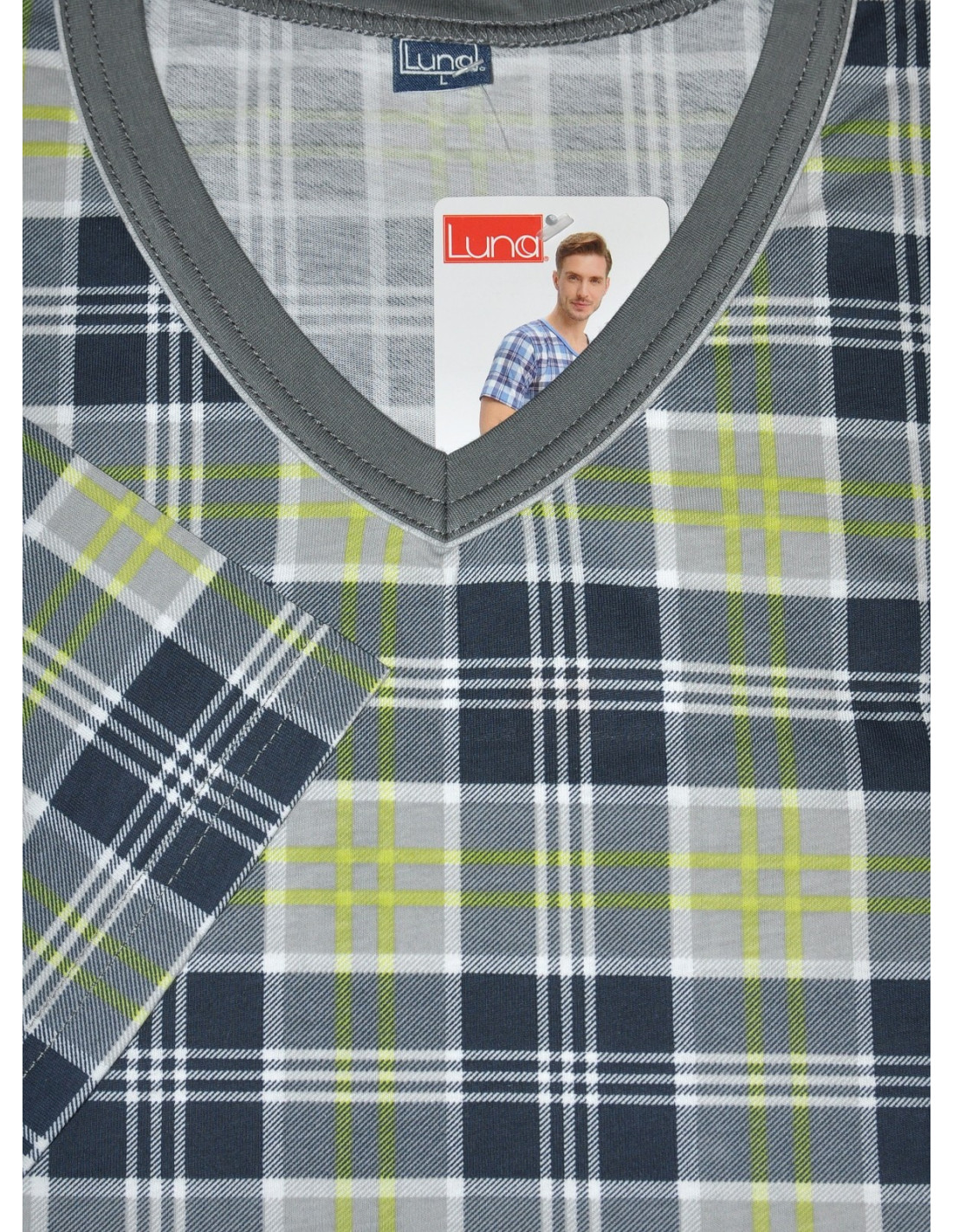 Vyriškos pižamos - pagaminta iš aukštos kokybės 100 % medvilnės - raštuoti marškinėliai trumpomis rankovėmis - smailėjanti iškirptė - laisvi, vienspalviai šortai komplektui užbaigti - nurodytos spalvos ir raštai yra pavyzdiniai ir gali keistis