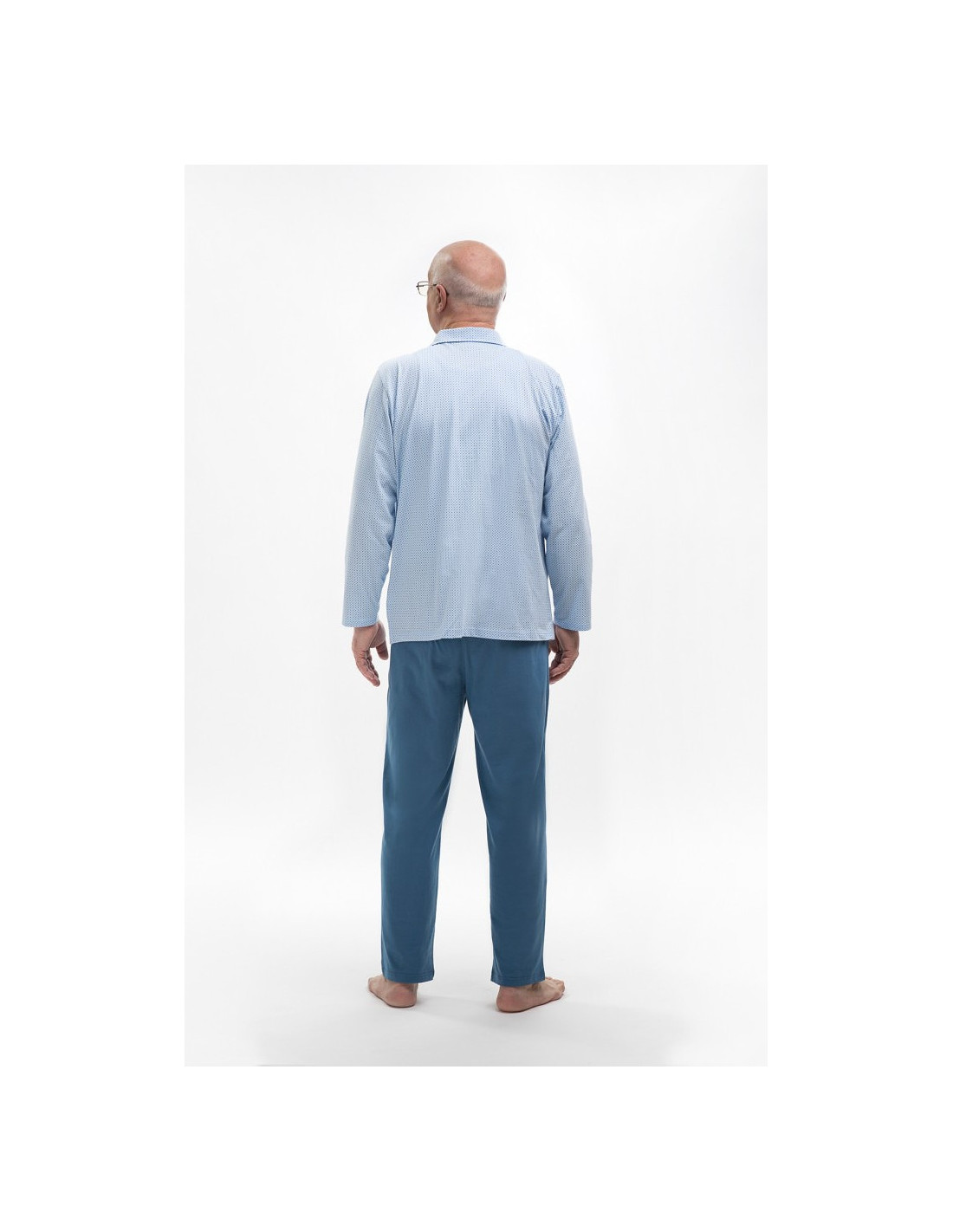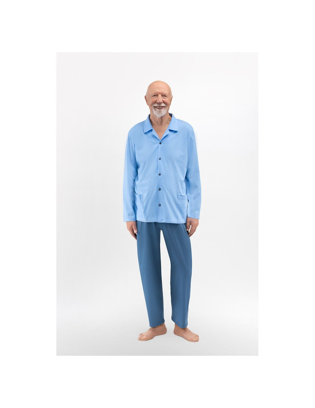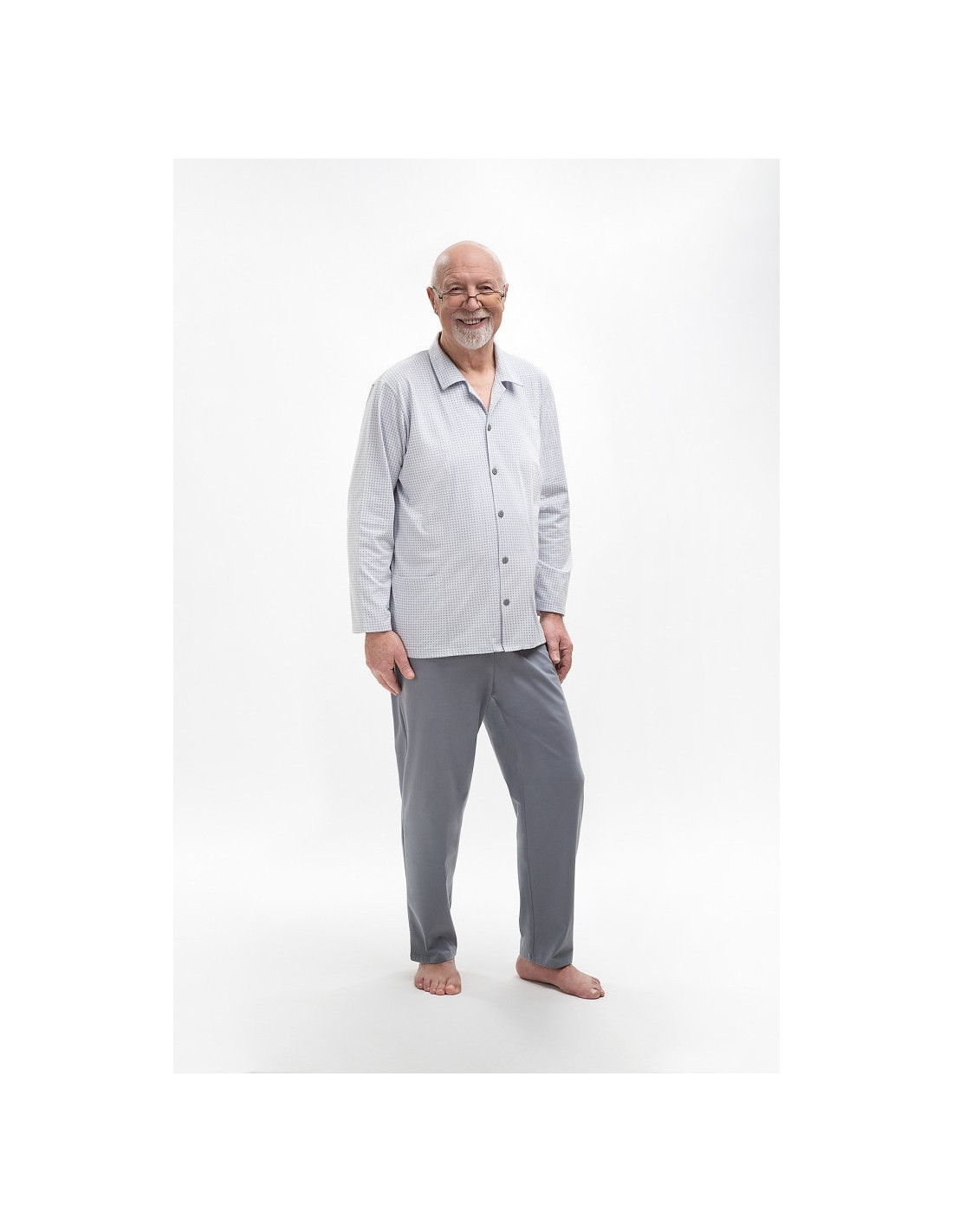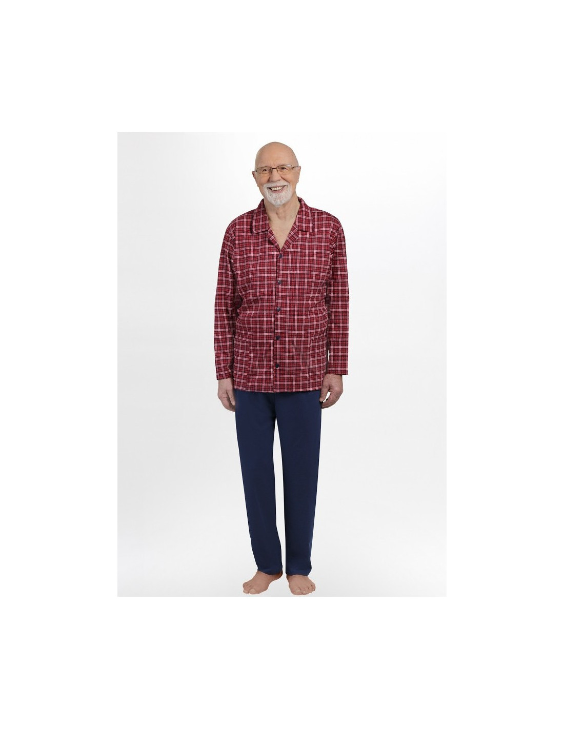 Vyriškos pižamos - aukštos kokybės medvilnė - raštuota palaidinė su sagomis - su apykakle - dvi išorinės kišenės apačioje - ilgos, vientisos, laisvai krentančios kelnės