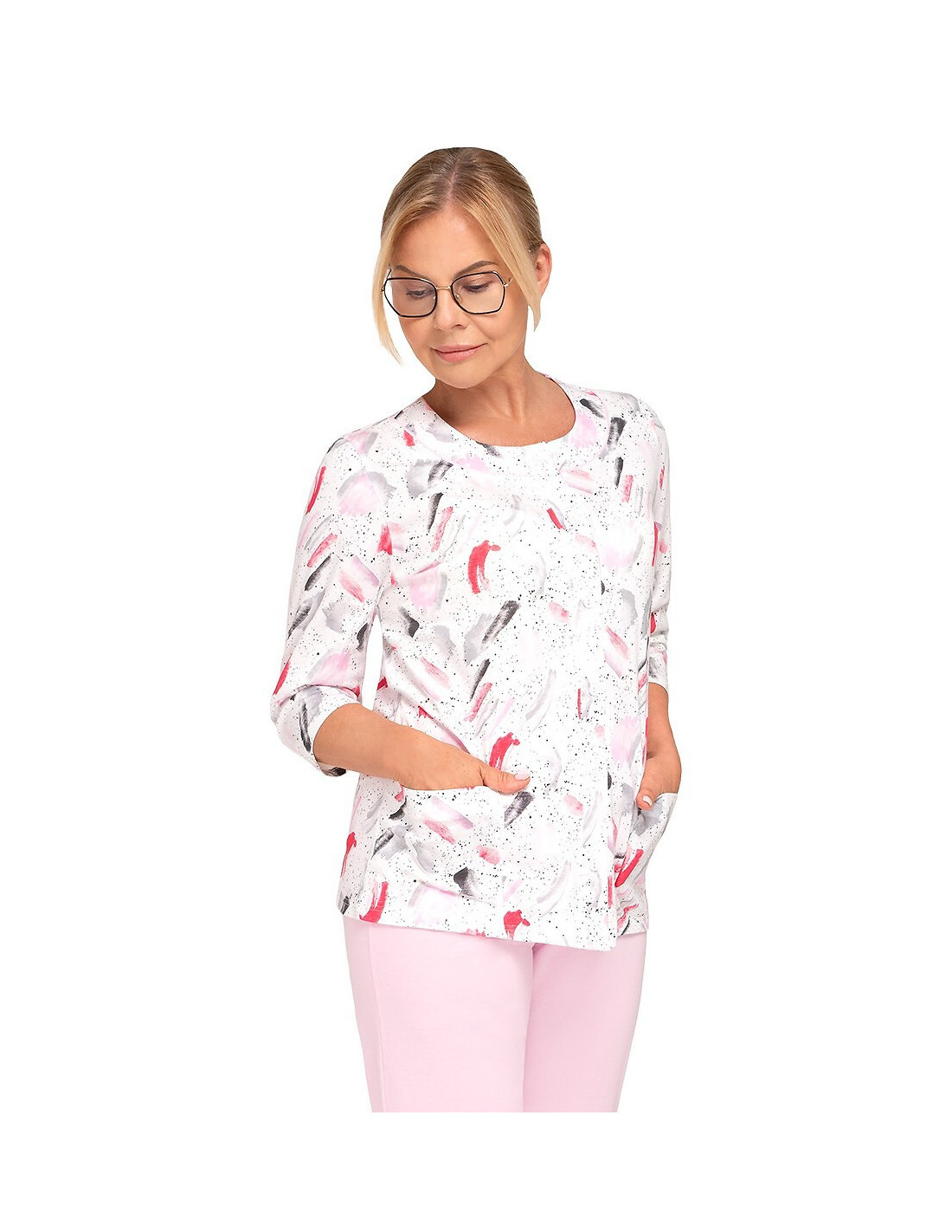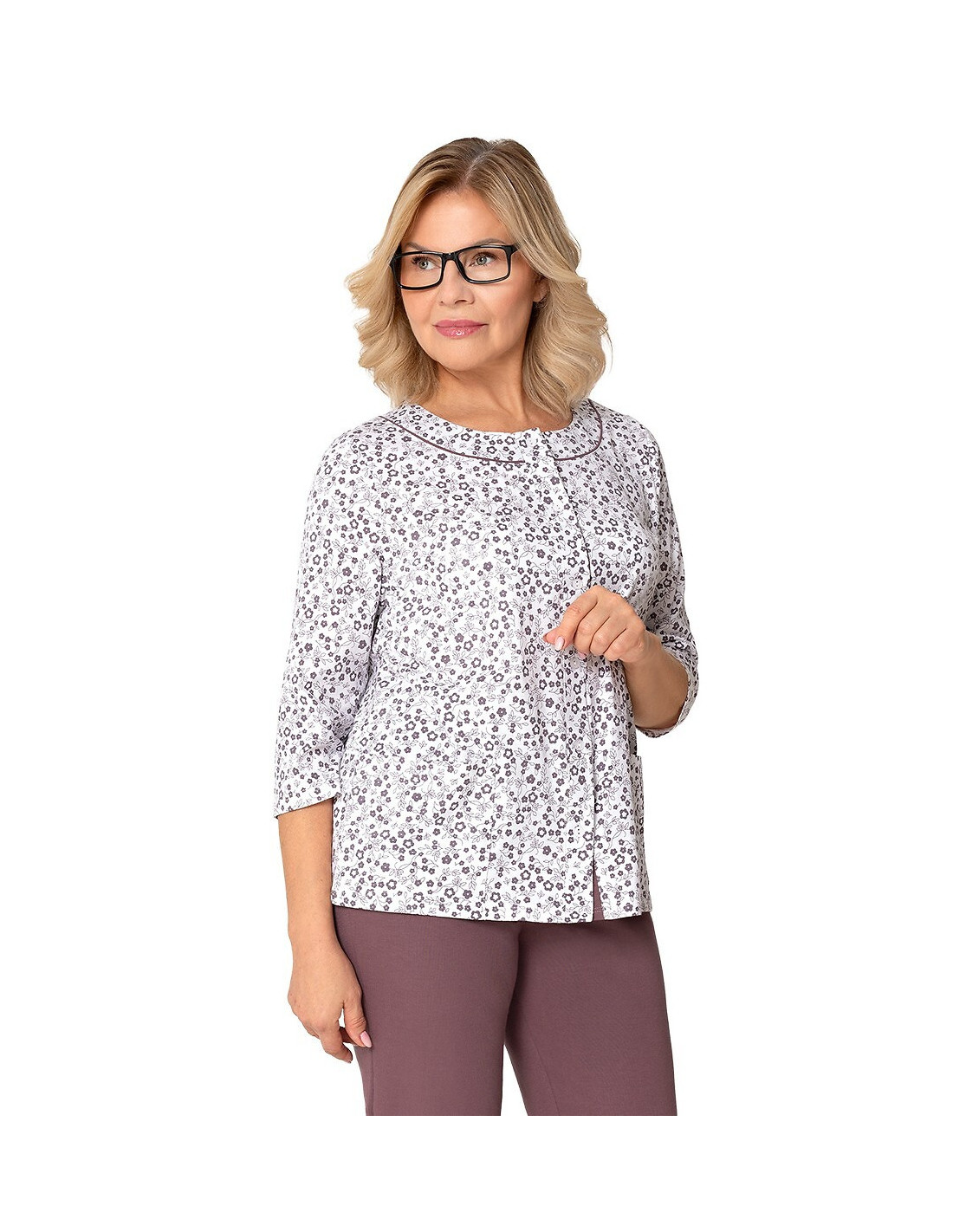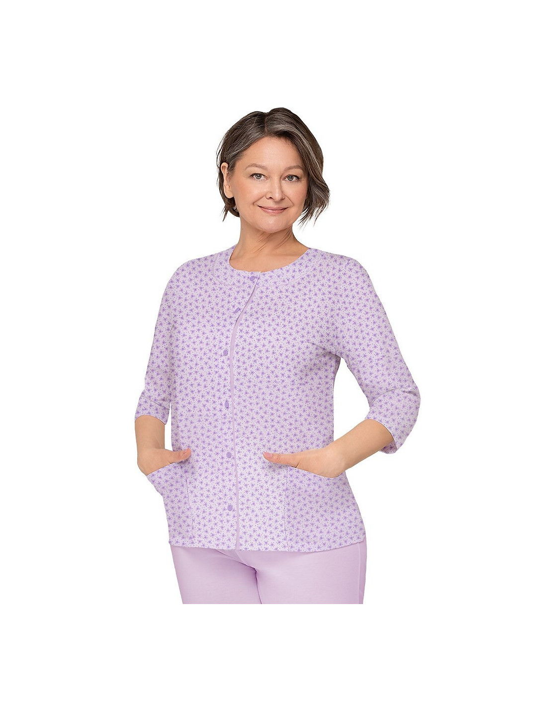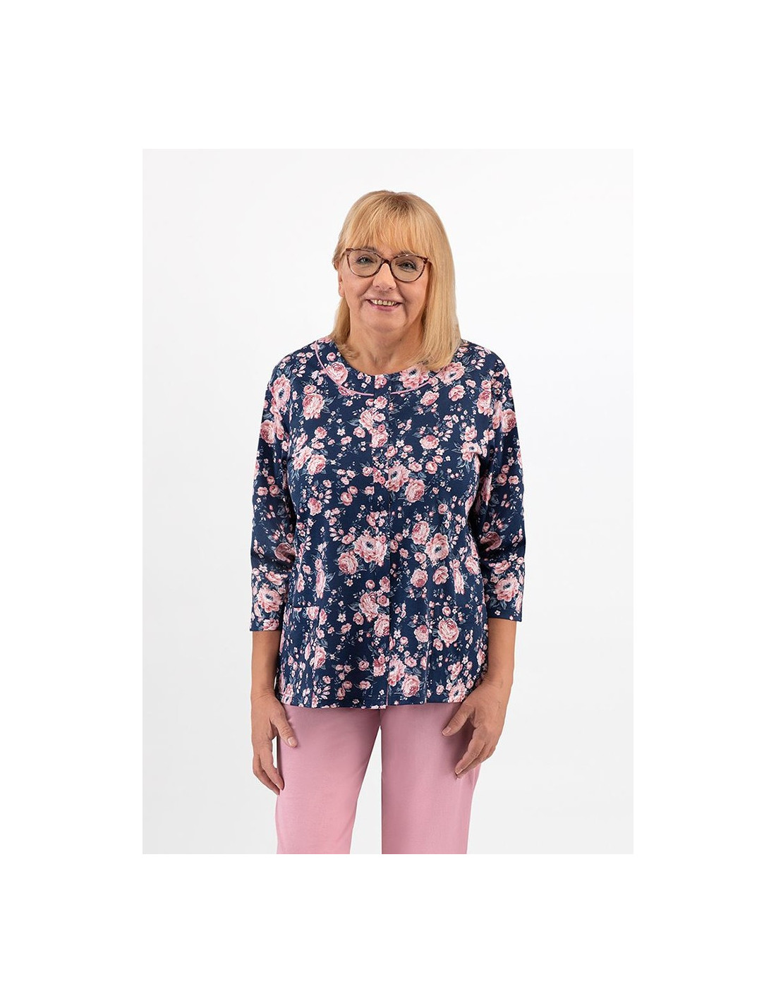 Moteriškos pižamos - pagaminta iš švelnios medvilnės - marškinėliai dekoruoti gėlių raštu - 3/4 rankovės - pusapvalė iškirptė - užsegama iškirpte - vienspalvės 3/4 ilgio kelnės
