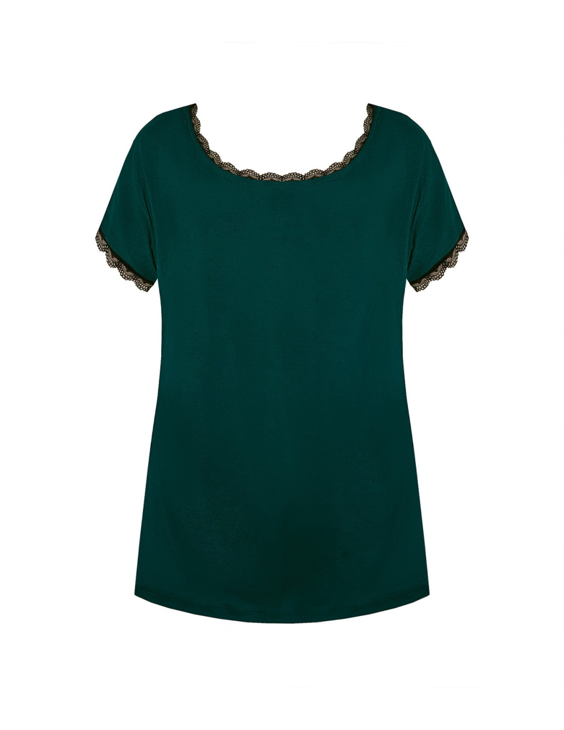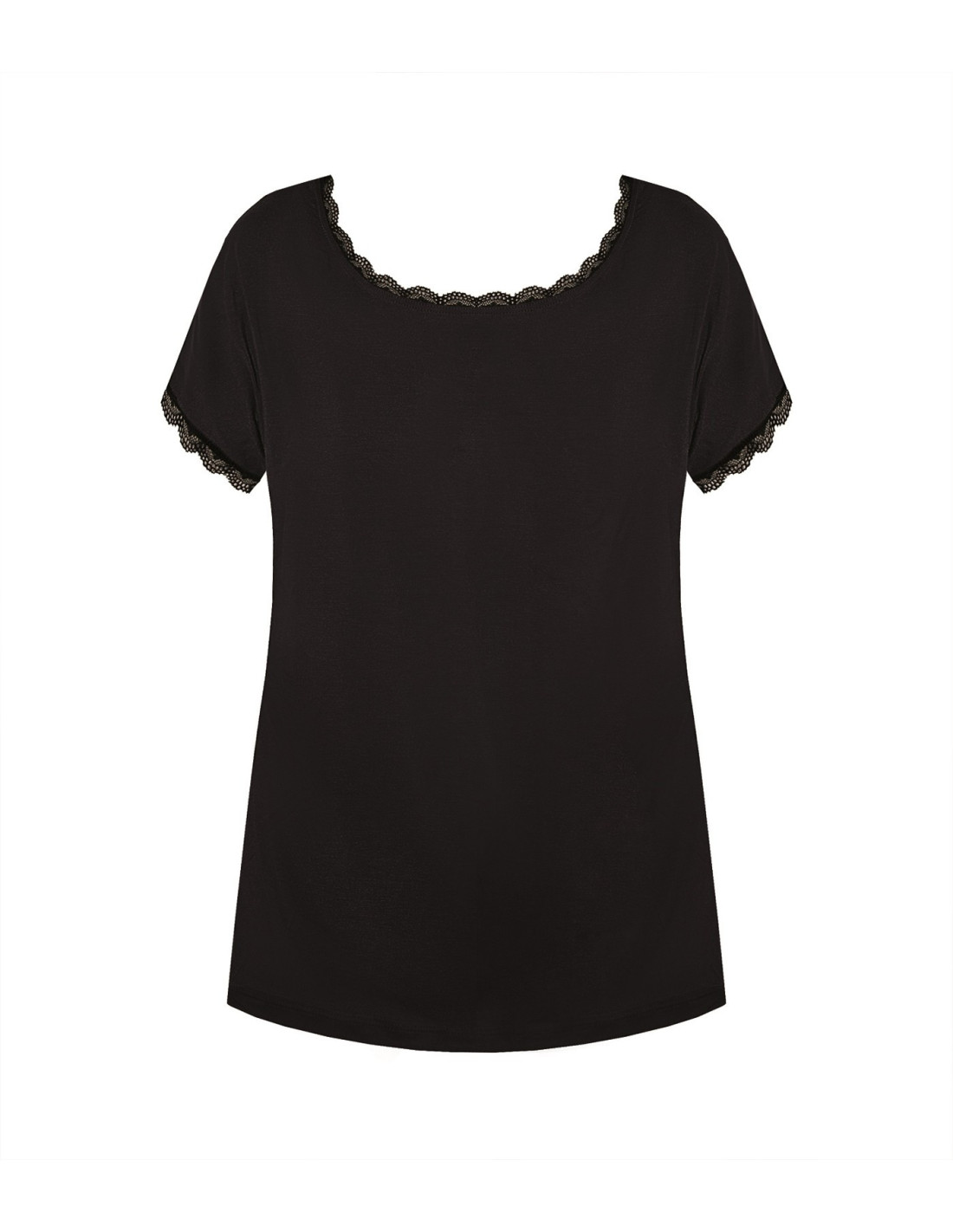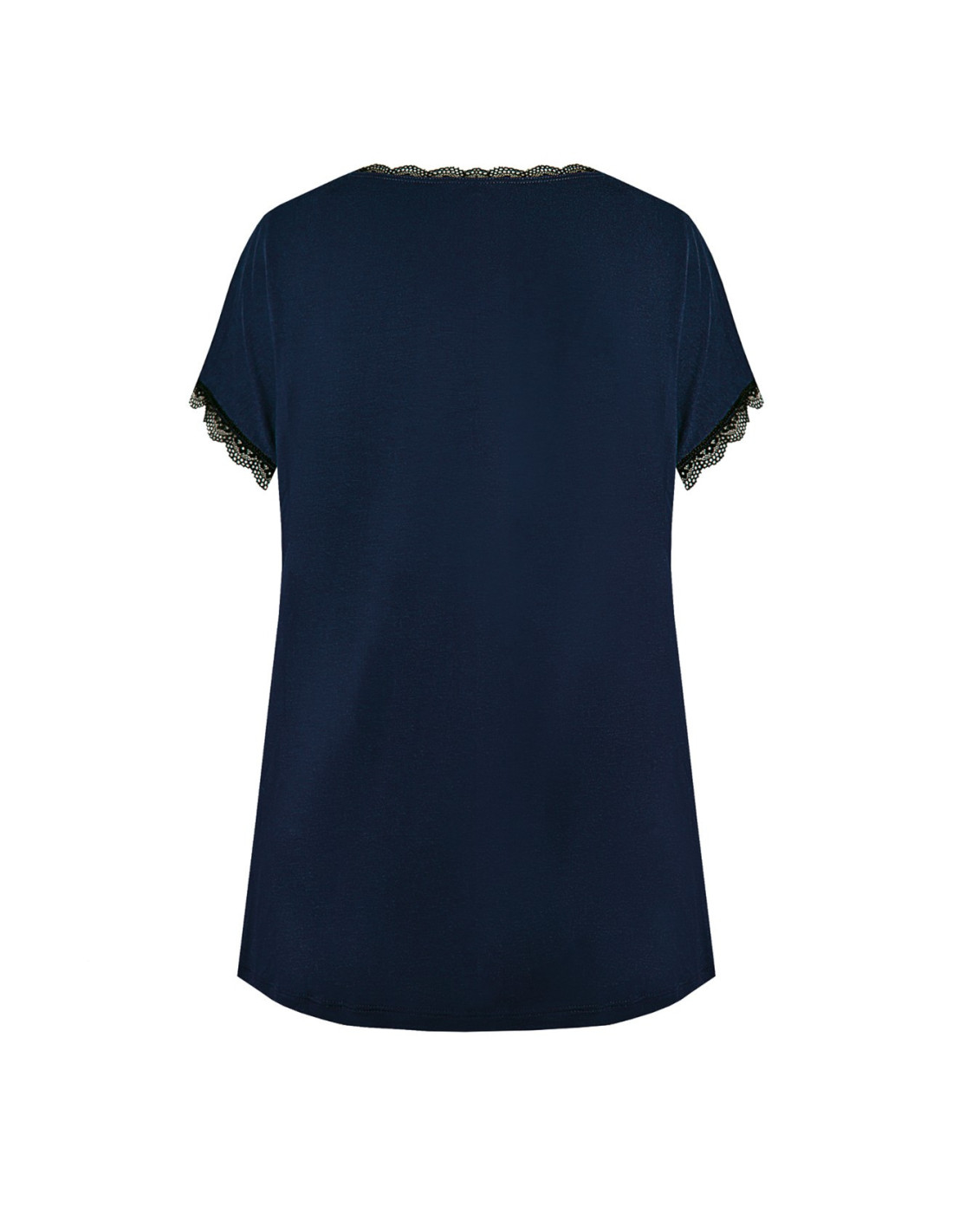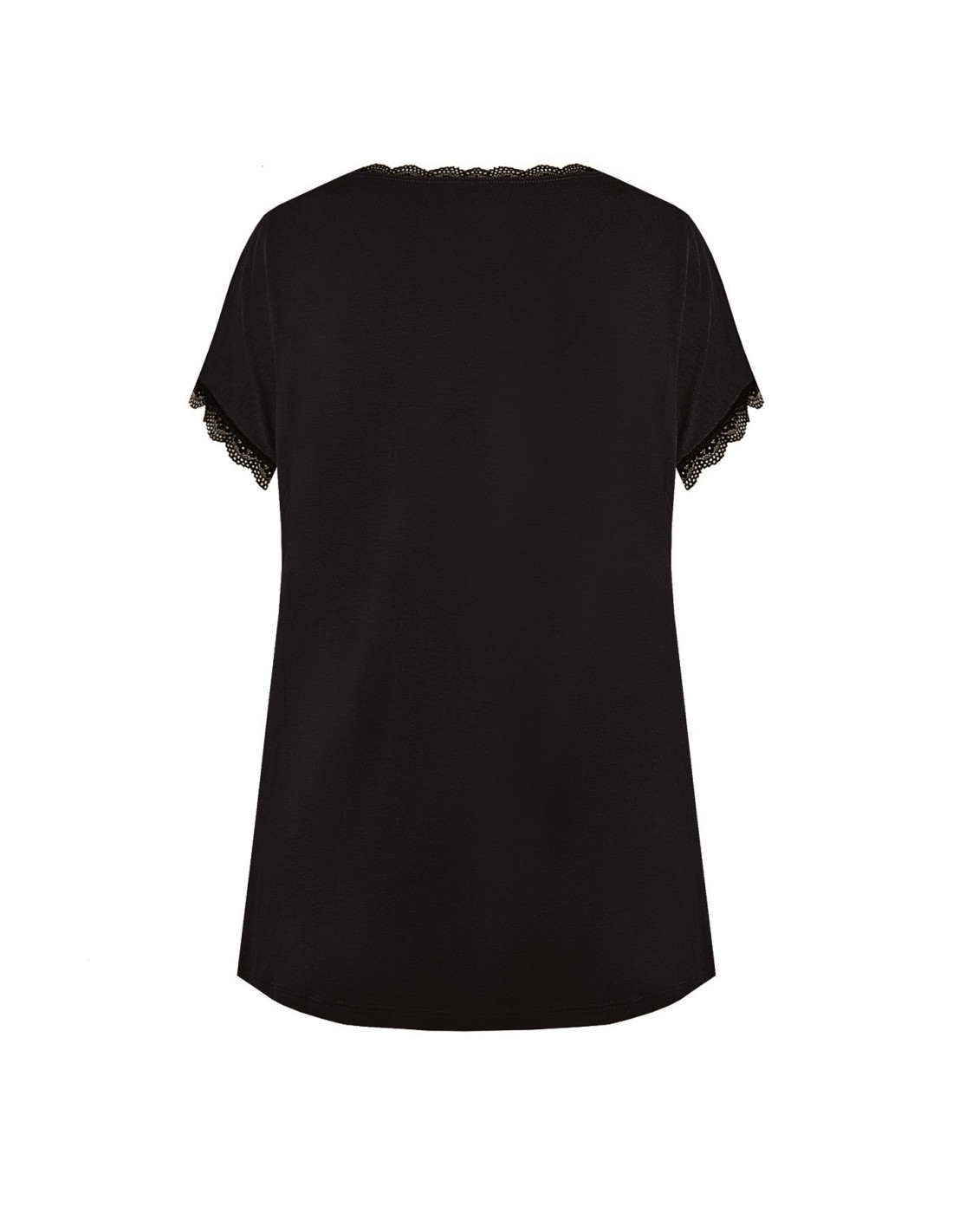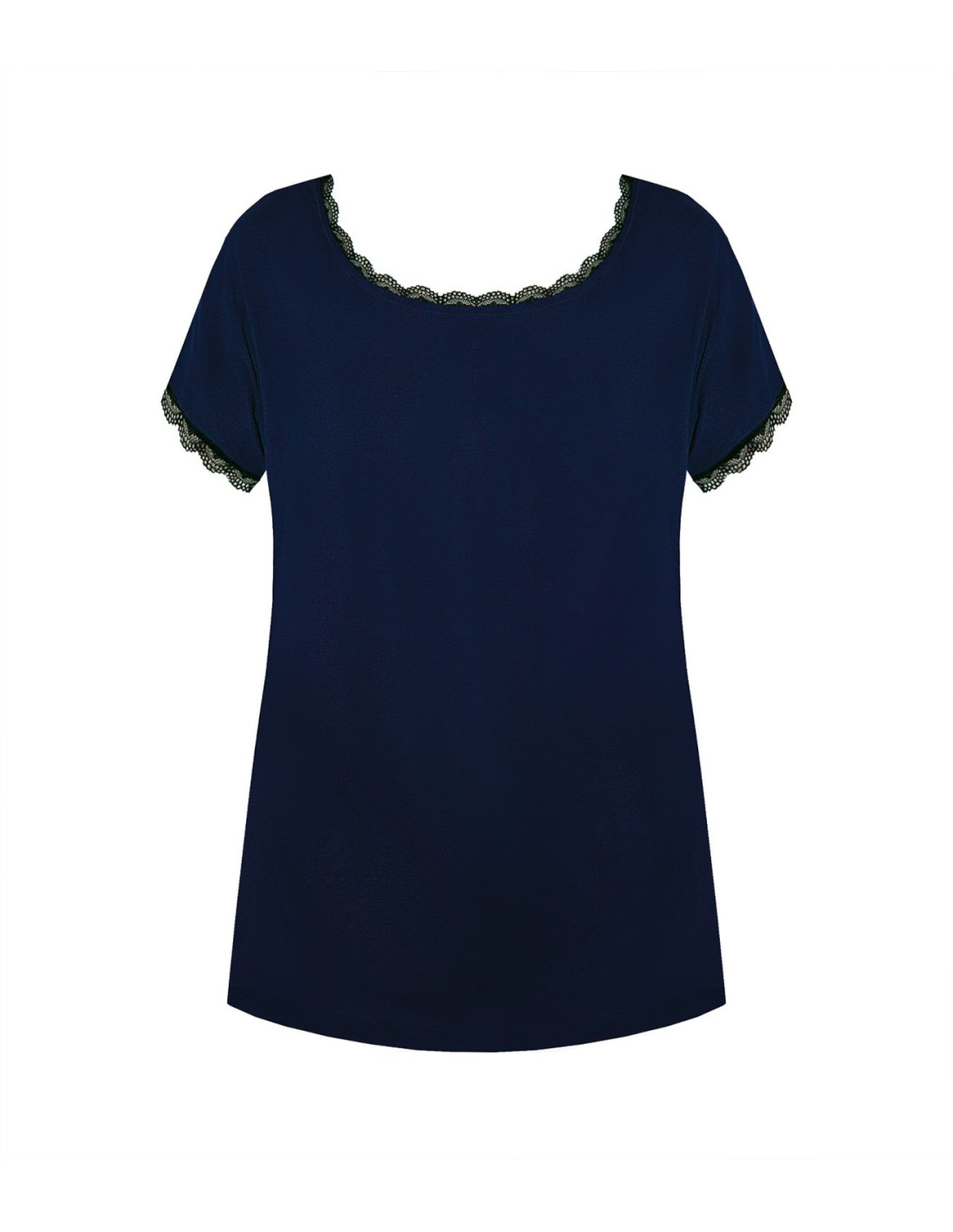 Moteriška palaidinė / marškiniai - iš švelnios ir minkštos viskozės - trumpomis "drugelio" tipo rankovėmis - apvali iškirptė - rankovės ir iškirptė apsiūtos nėriniais - lygus