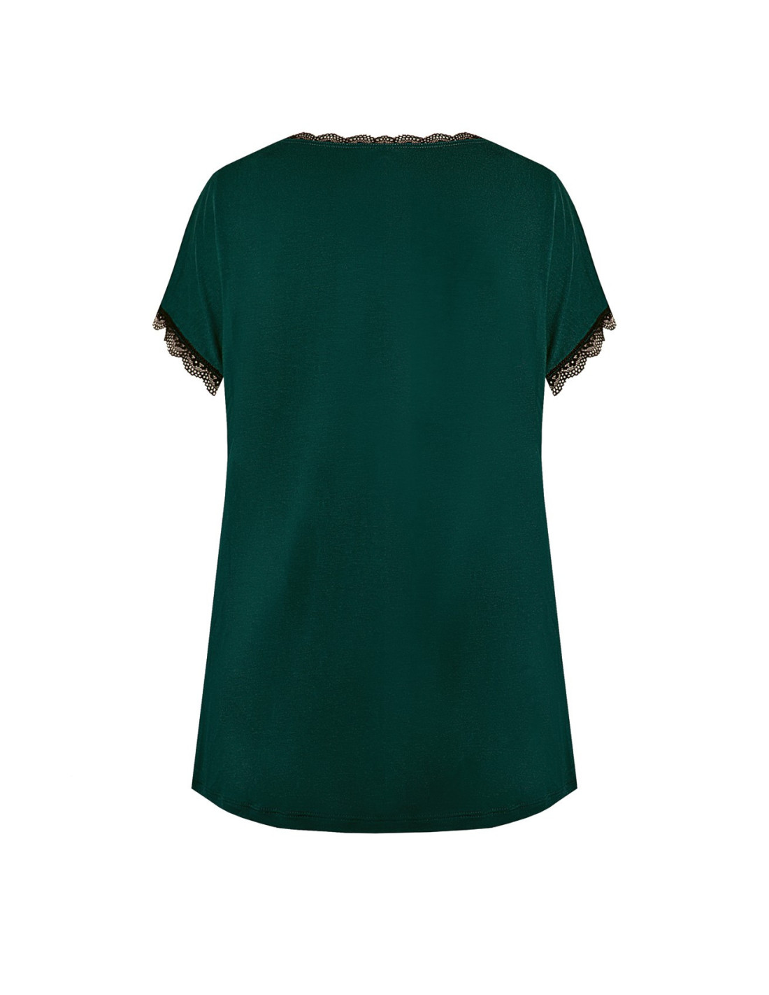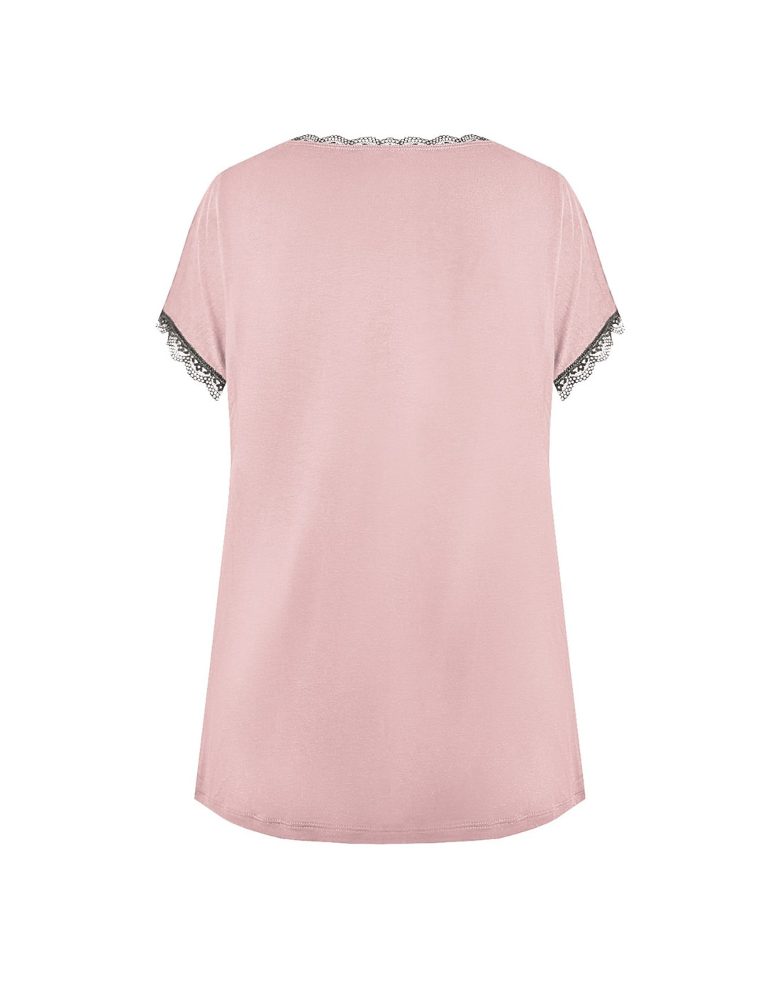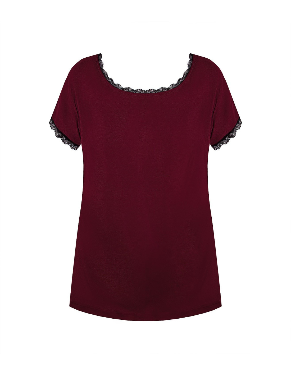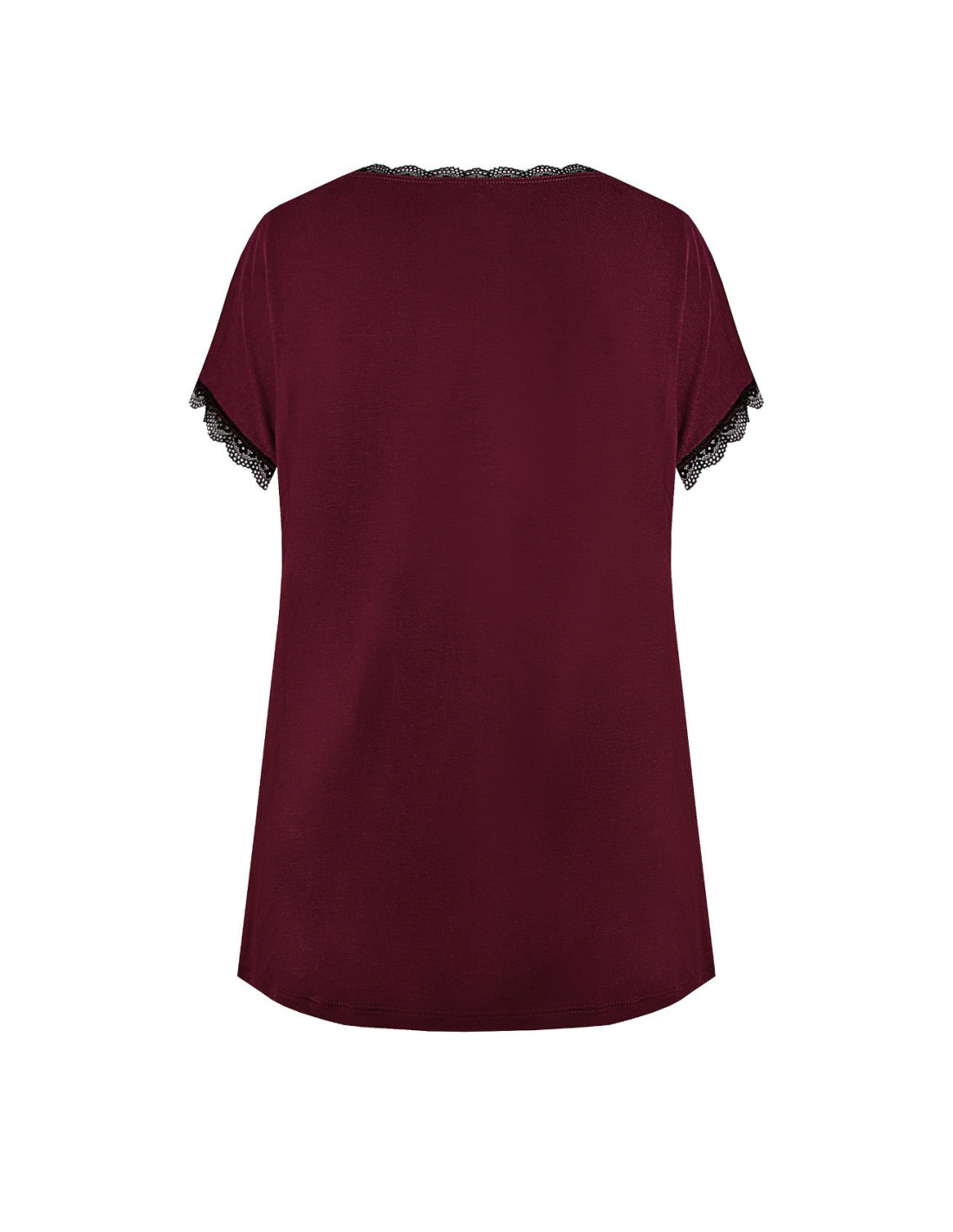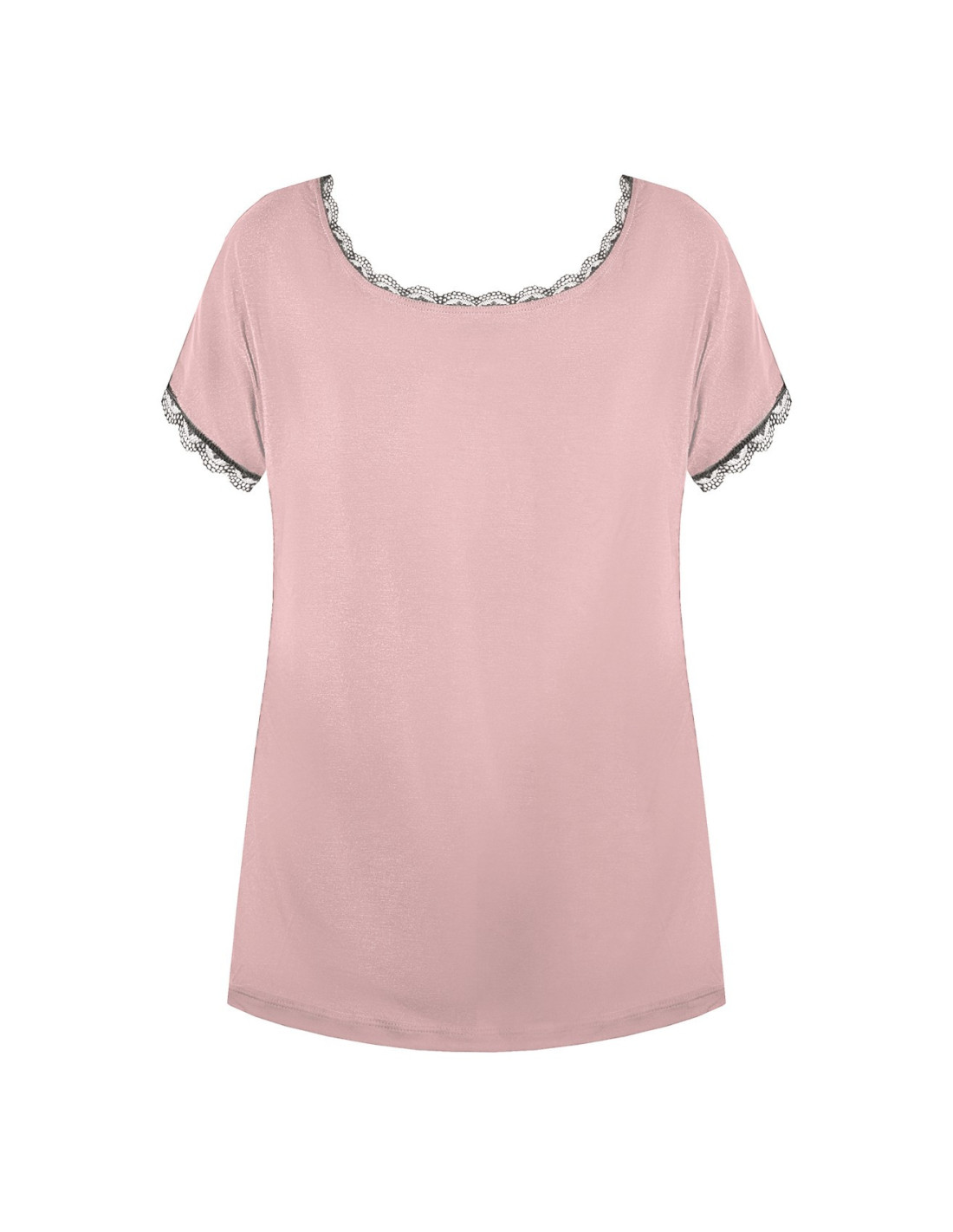 Moteriška palaidinė / marškiniai - iš švelnios ir minkštos viskozės - trumpomis "drugelio" tipo rankovėmis - apvali iškirptė - rankovės ir iškirptė apsiūtos nėriniais - lygus