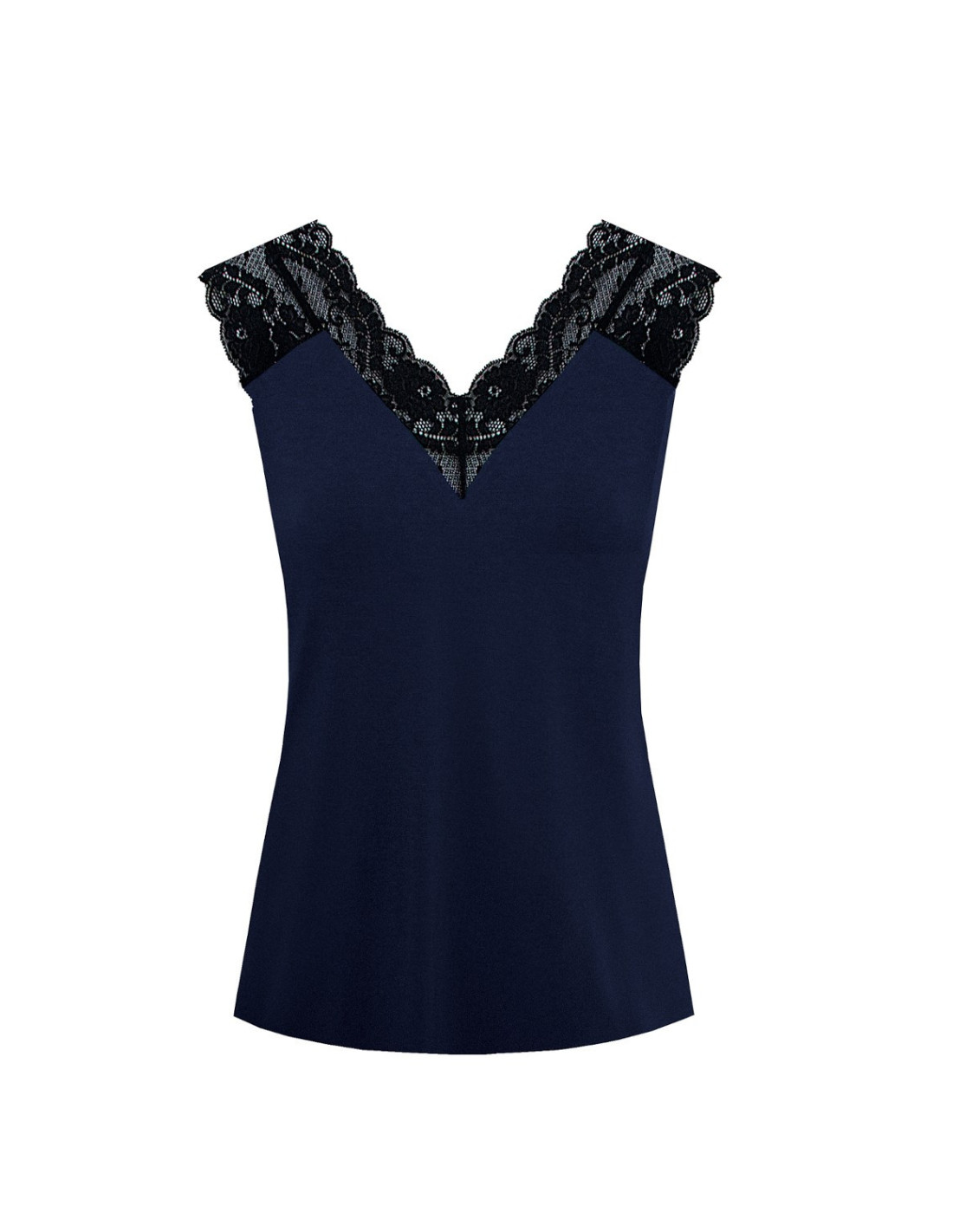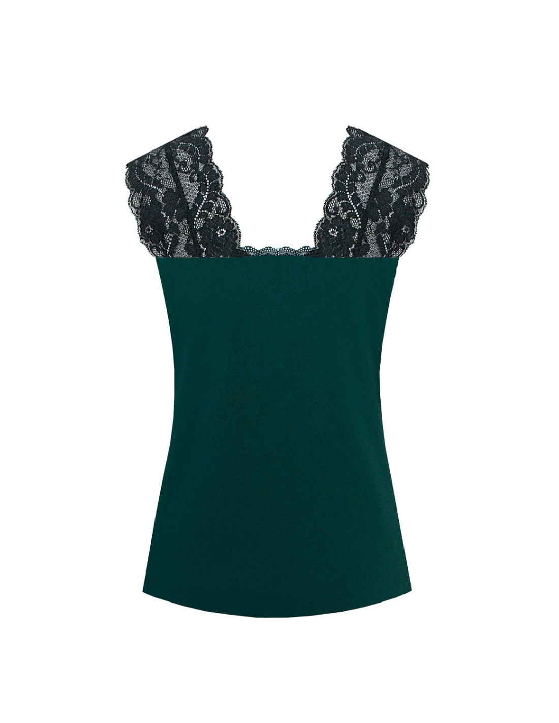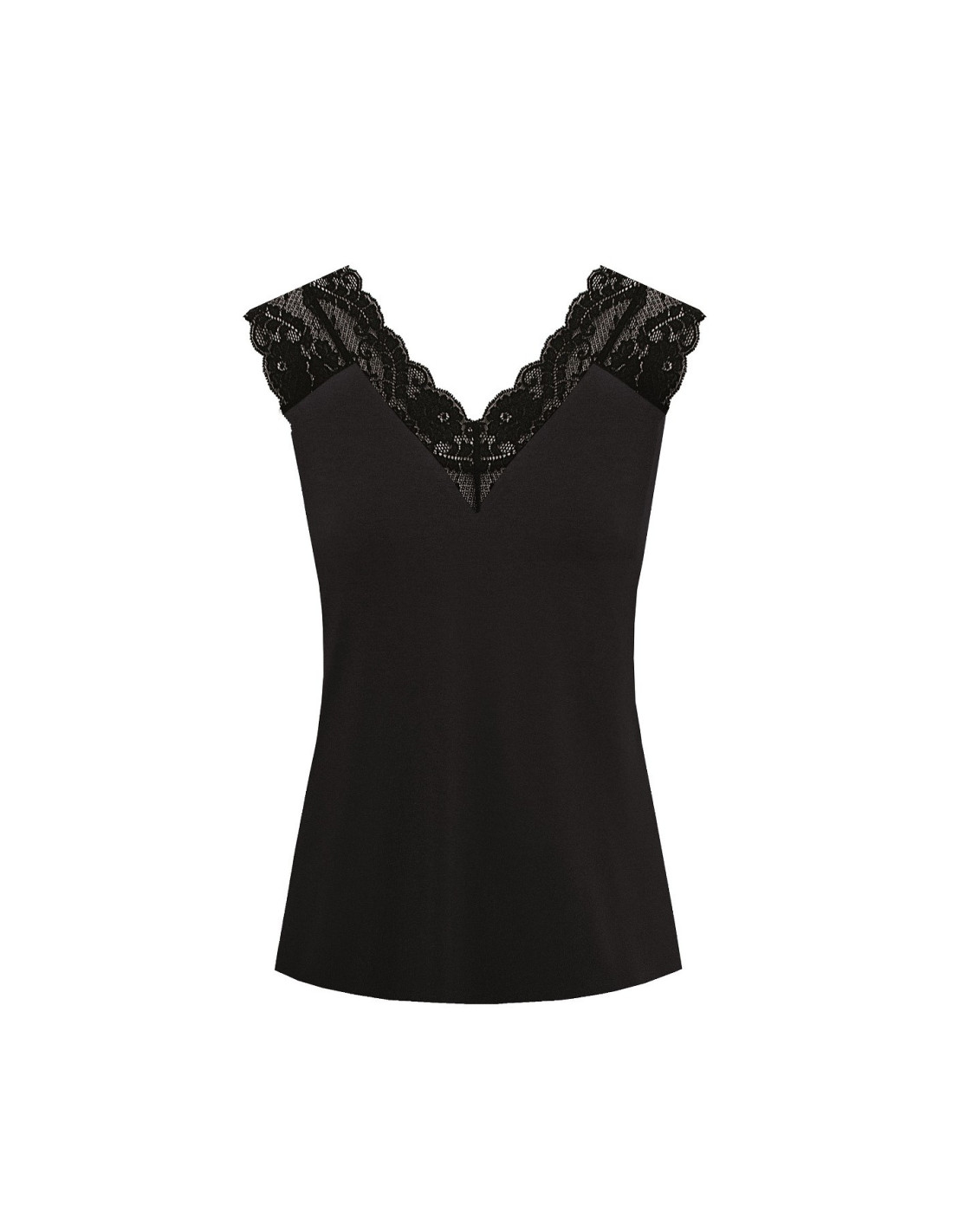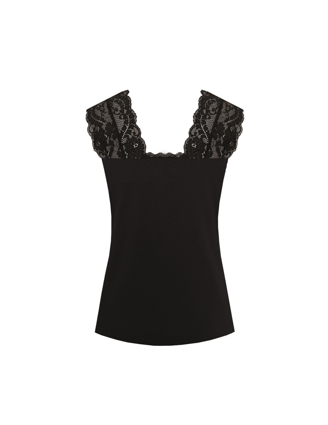 Moteriška palaidinė / marškiniai - iš minkštos ir švelnios viskozės - ant platesnės nėriniuotos petnešėlės - v formos iškirptė