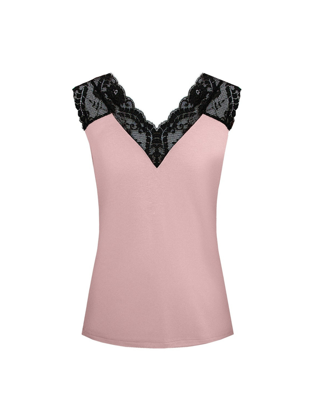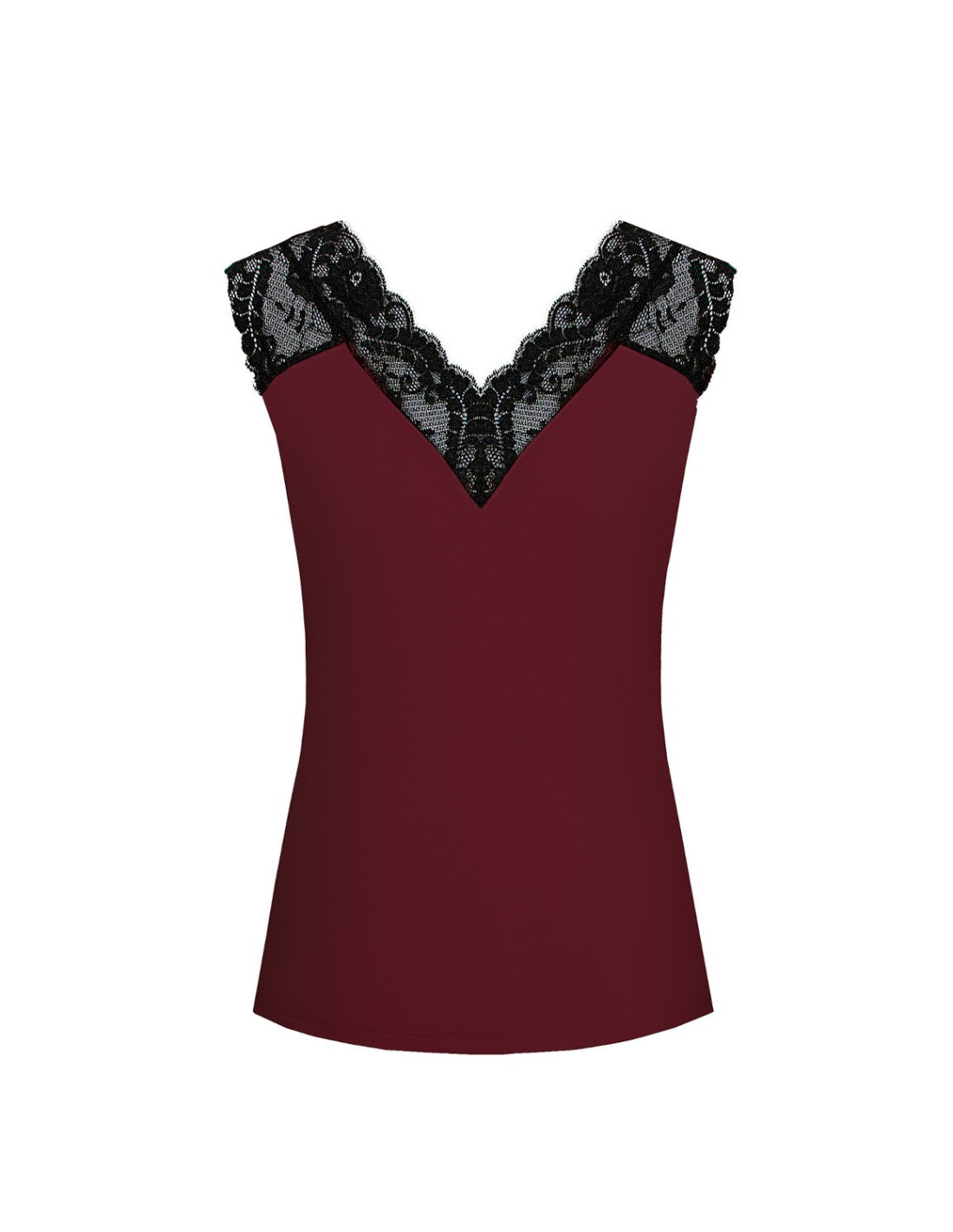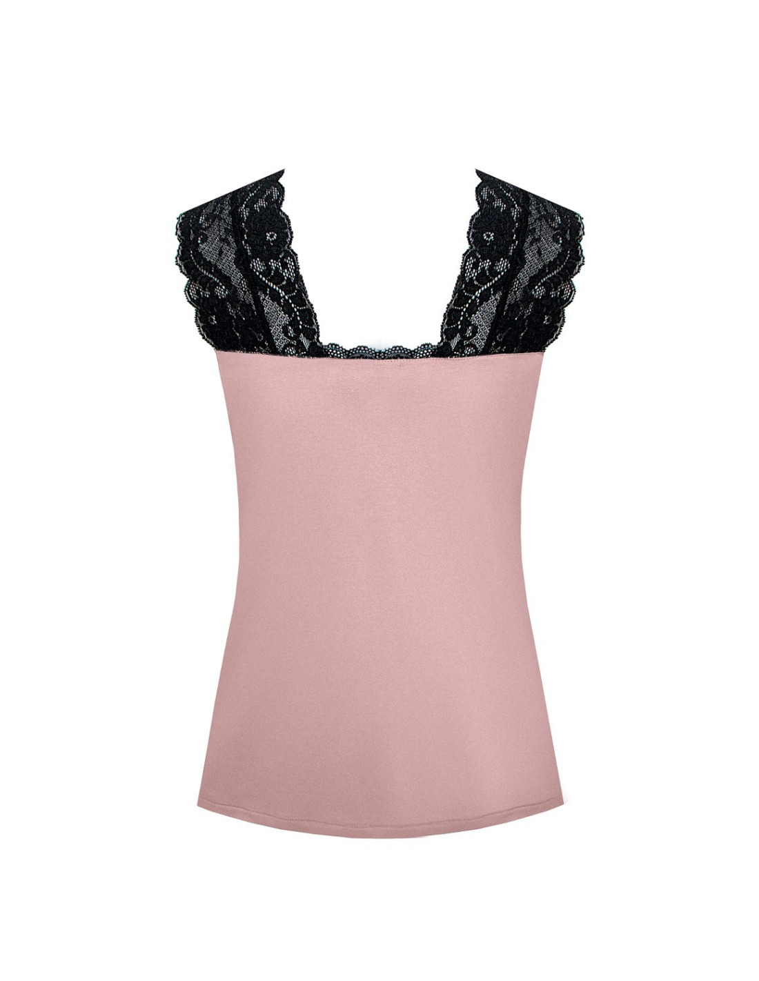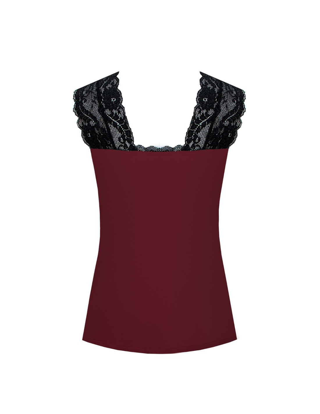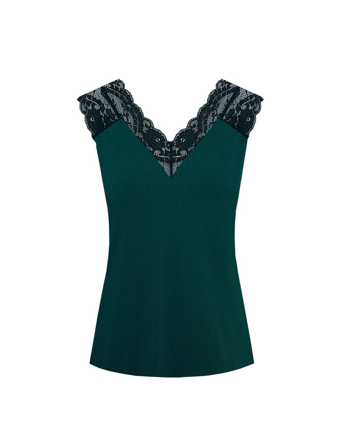Moteriška palaidinė / marškiniai - iš minkštos ir švelnios viskozės - ant platesnės nėriniuotos petnešėlės - v formos iškirptė