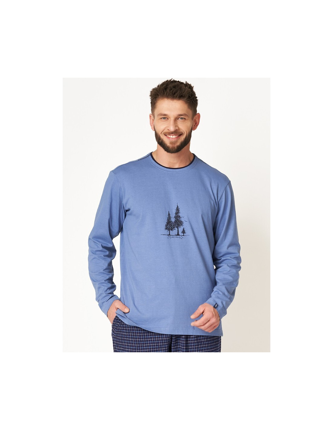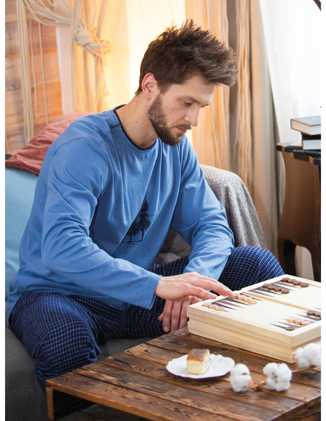 Vyriškos pižamos - palaidinė ilgomis rankovėmis - dekoratyvinis raštas priekyje - ilgos languotos kelnės - šoninės kišenės - patogus elastinis juosmuo, apsiūtas medvilne