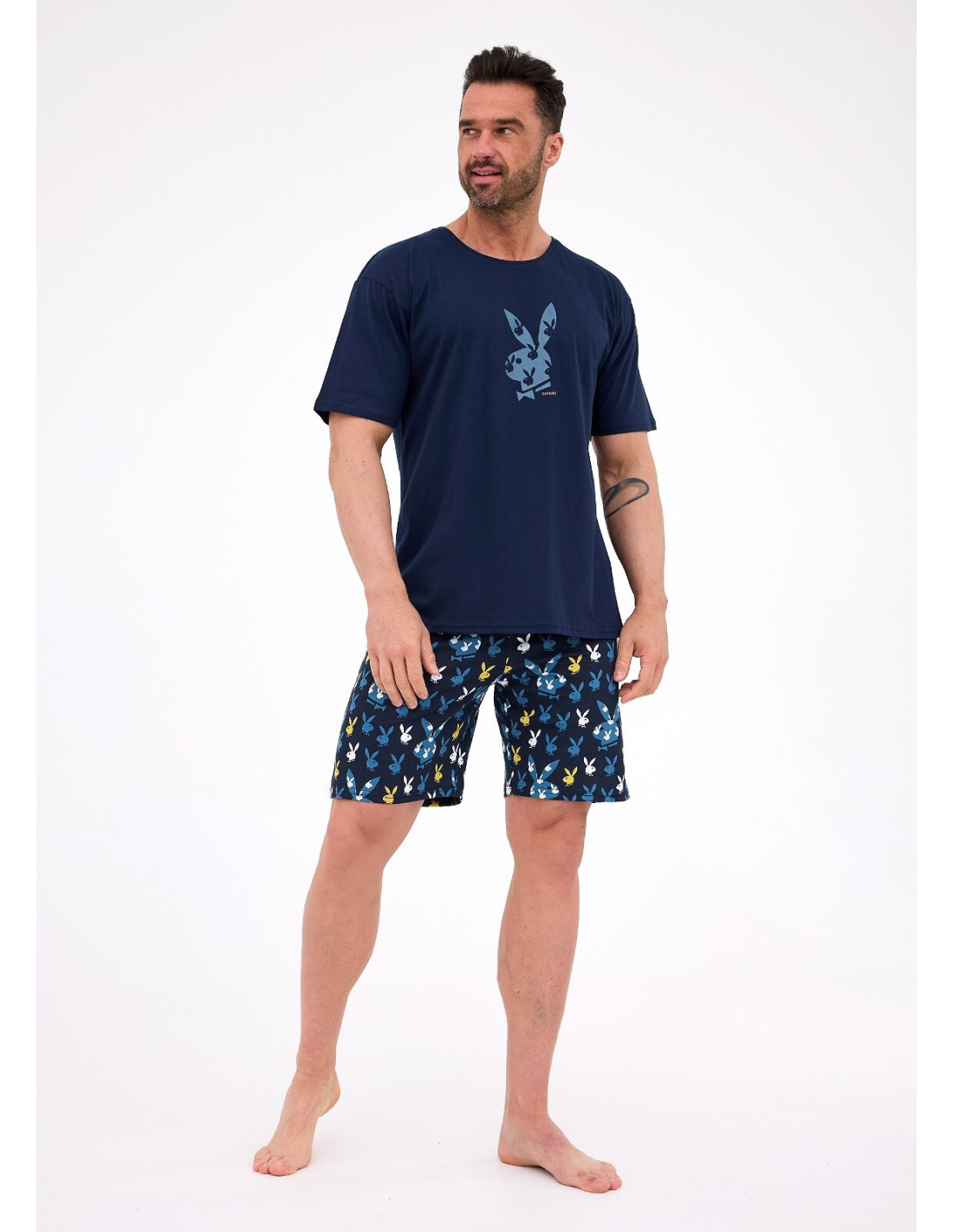 Vyriškos pižamos - aukštos kokybės medvilnė - marškinėliai trumpomis rankovėmis - dekoruotos zuikio raštu - trumpi šortai, raštuoti - patogus elastinis juosmuo - supakuota į dėžutę