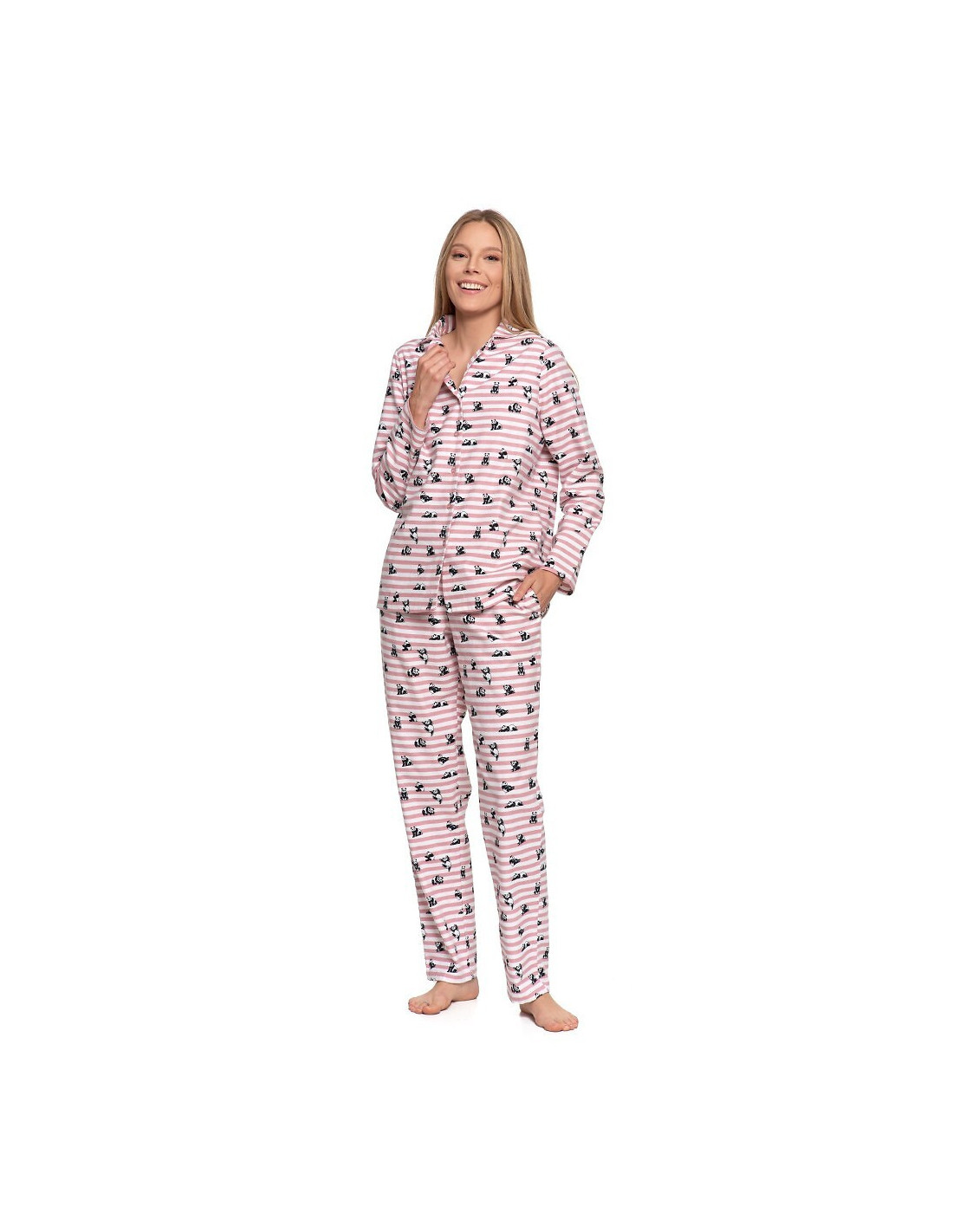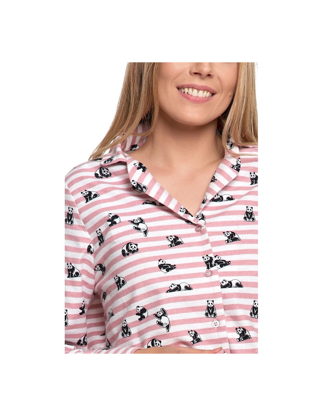Moteriškos pižamos - aukštos kokybės medvilninė flanelė - dryžuotas raštas ir žaismingas pandos raštas - palaidinė ilgomis rankovėmis - su apykakle, užsegama sagomis - ilgos kelnės su kišenėmis - liemuo su elastine juosta, apsiūta audiniu
