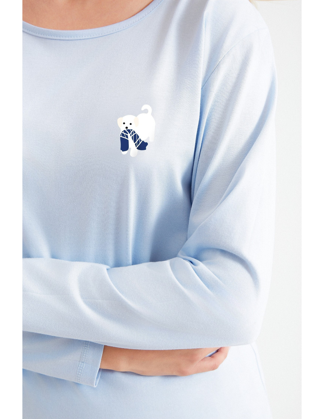 Moteriškos pižamos - aukštos kokybės medvilnė - apvali iškirptė - dekoratyvinis šuns raštas ant krūtinės - ilgos rankovės - raštuotos kelnės, 7/8 ilgio - patogus elastingas juosmuo