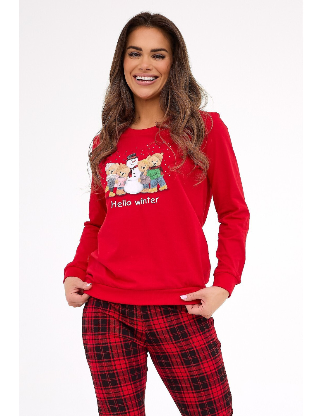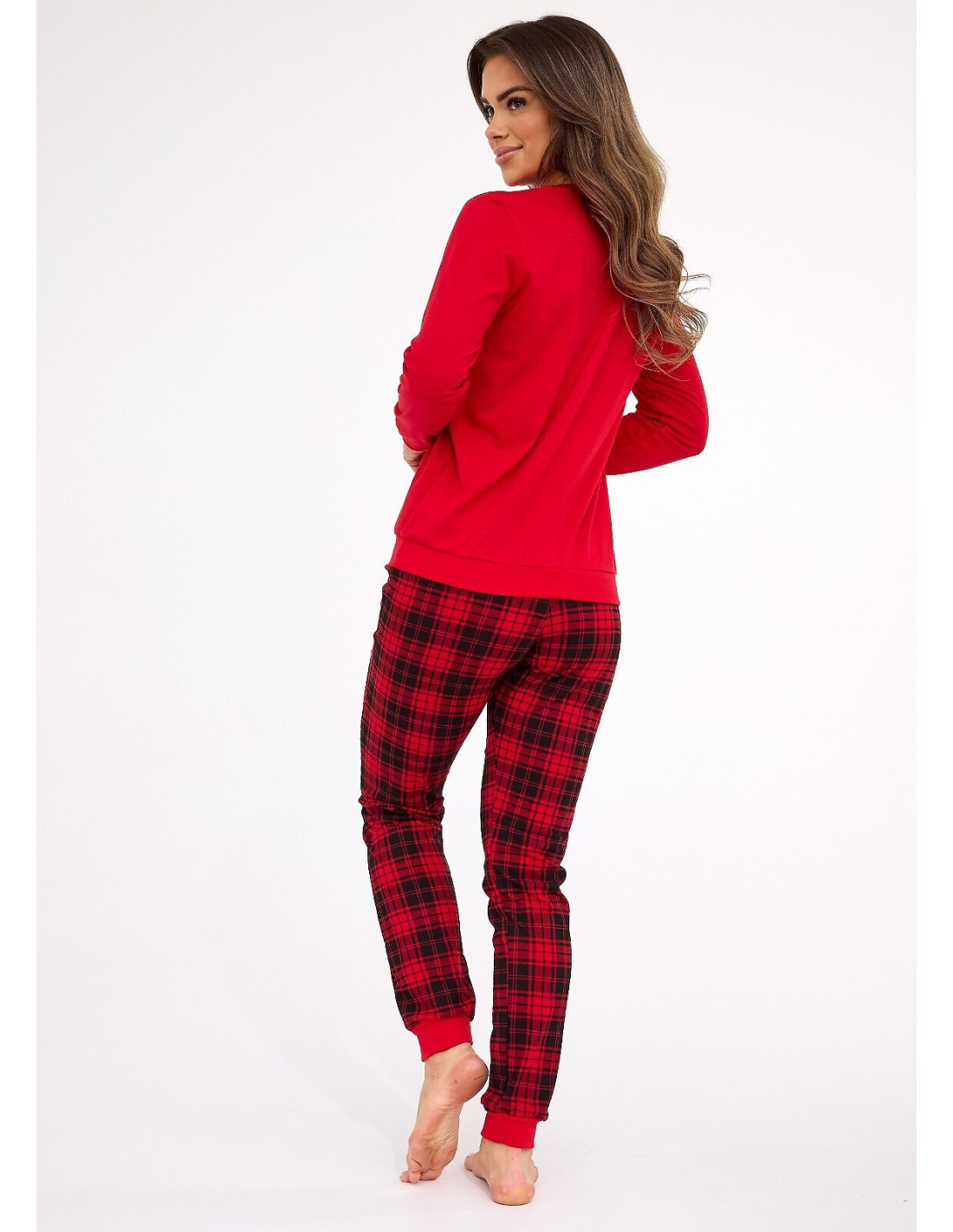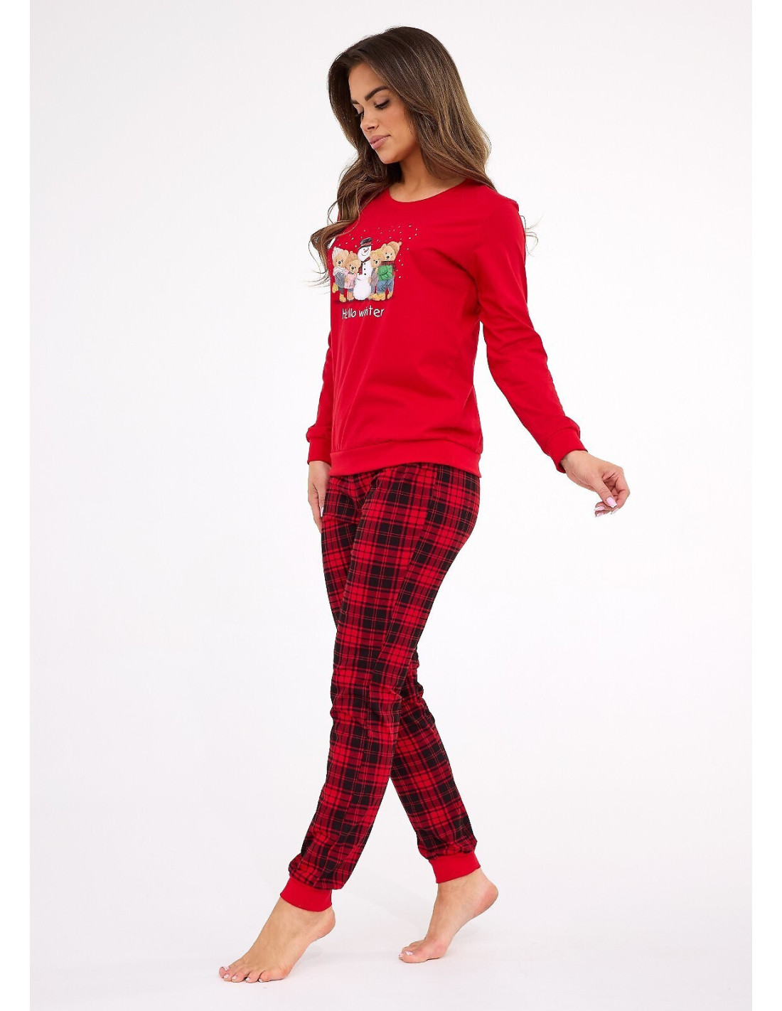 Moteriškos pižamos - aukštos kokybės minkšta medvilnė - marškinėliai ilgomis rankovėmis - spalvinga spauda priekyje - ilgos languotos kelnės - rankovės, kojos ir apačia su briaunuotais rankogaliais - supakuota į dekoratyvinę dėžutę