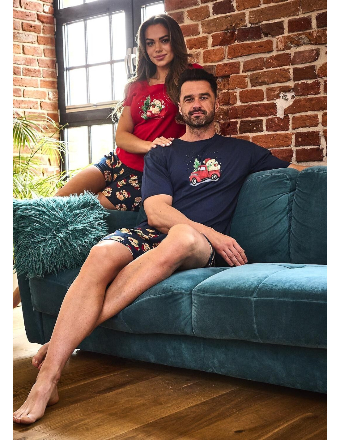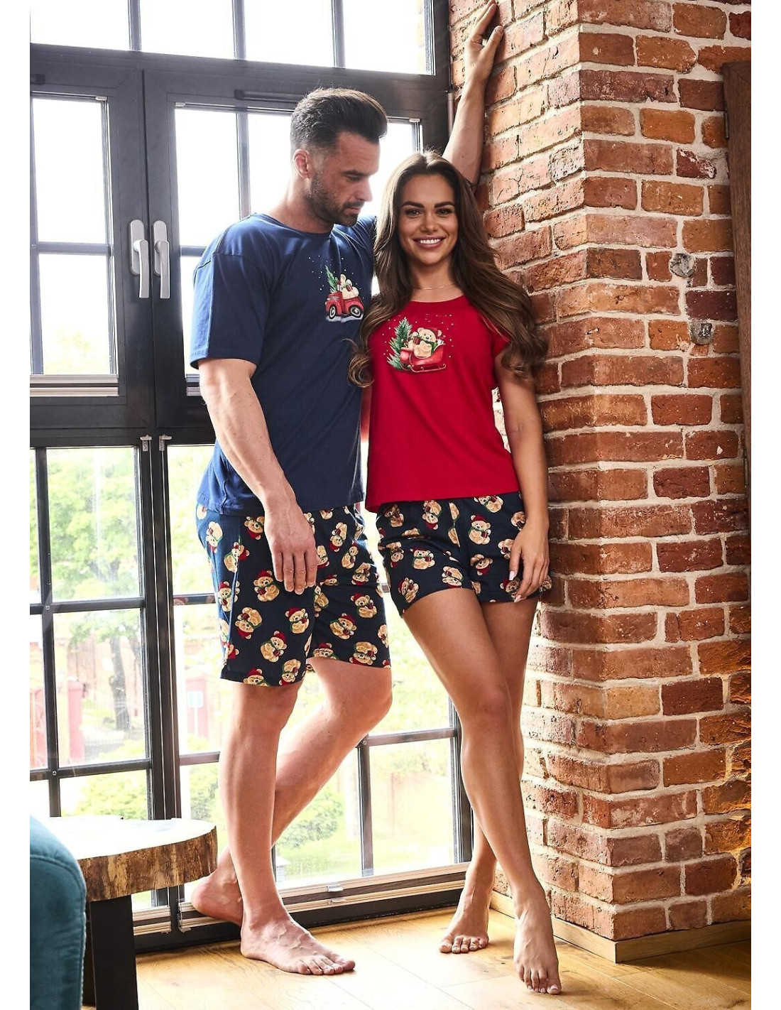 Moteriškos pižamos iš kolekcijos "Merry Christmas - aukštos kokybės minkšta medvilnė - marškinėliai trumpomis rankovėmis - priekyje - spalvinga meškiukų spauda - priderintos trumpos raštuotos kelnės - supakuota į dekoratyvinę dėžutę