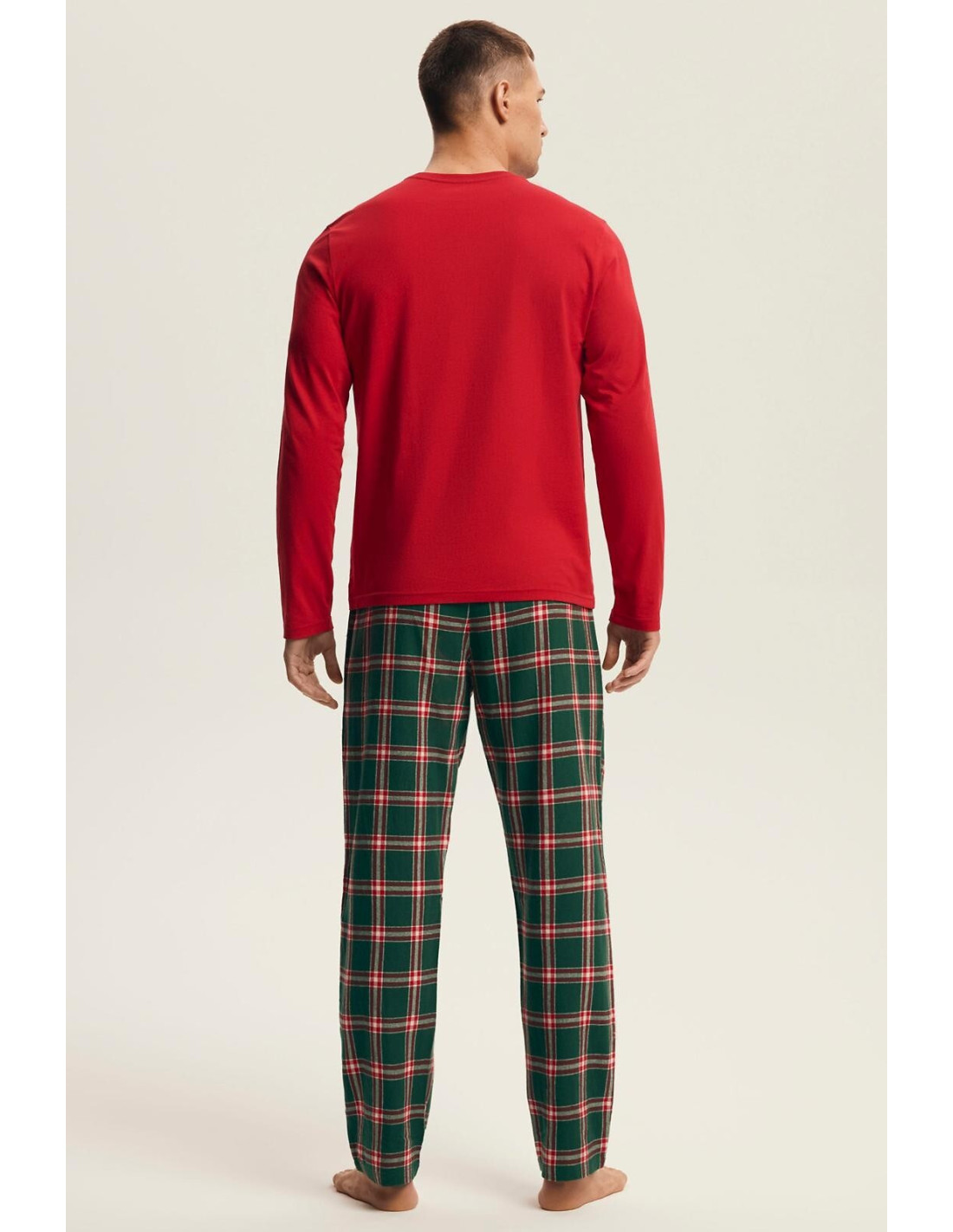 Vyriškos pižamos - aukštos kokybės medvilnė - marškiniai ilgomis rankovėmis - priekyje puošta šventiniu motyvu - kartu su ilgomis languotos flanelės kelnėmis