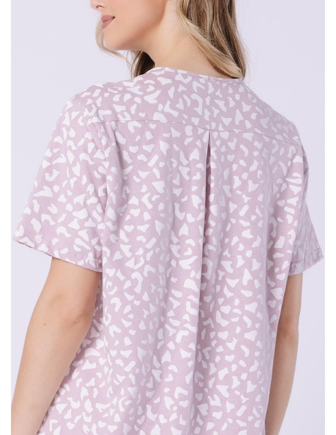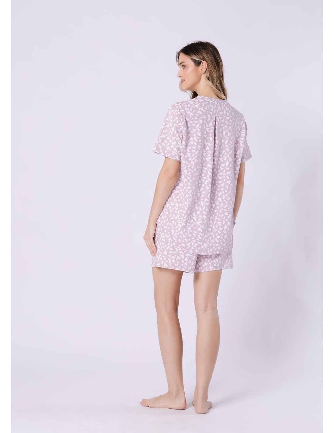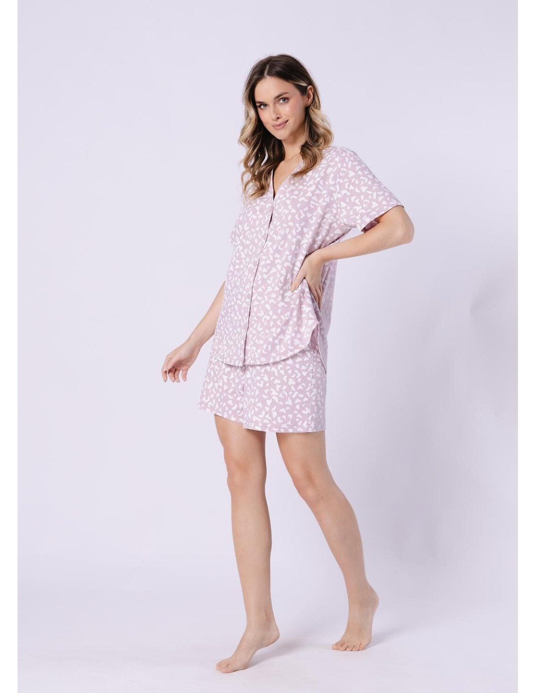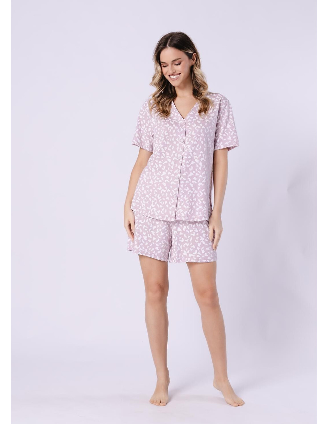 Piżama damska - wysokiej kokybės wzorzysta bawełna - koszulka z krótkim rękawem, zapinana na guziki - dekolt w szpic - spodenki krótkie - w pasie wygodna gumka