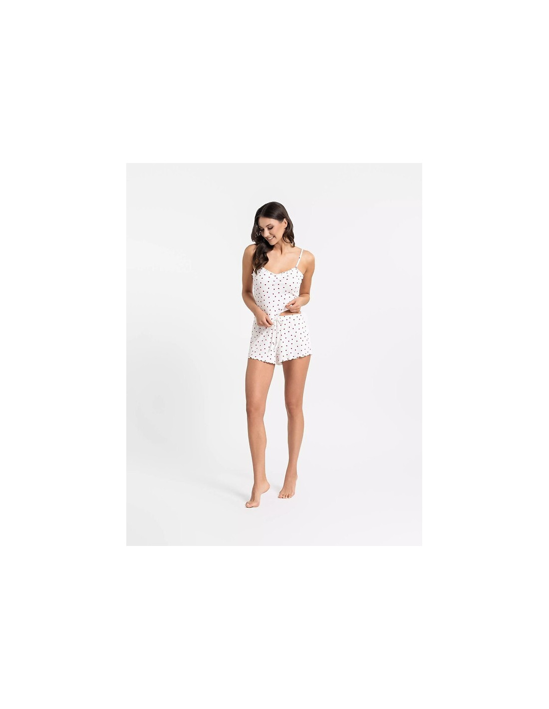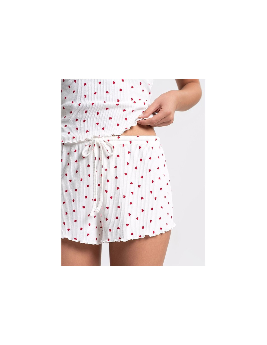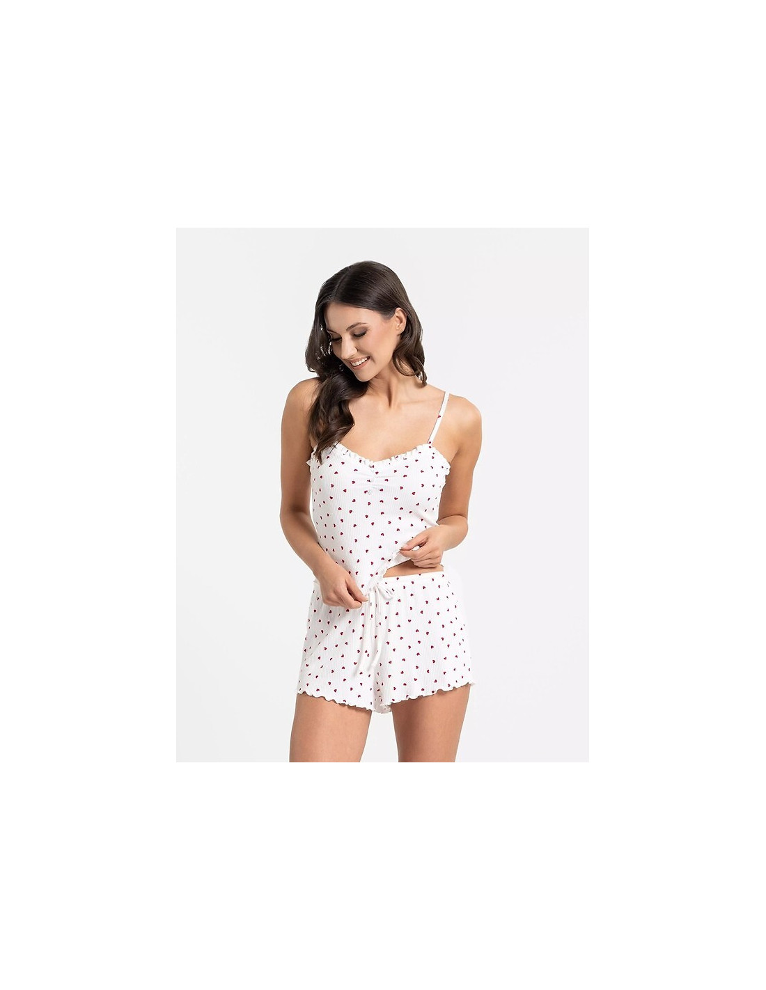 Letnia piżama damska - koszulka na ramiączkach - struktura dzianiny w drobny prążek - spodenki krótkie - print w serduszka - pakowana w foliowy woreczek