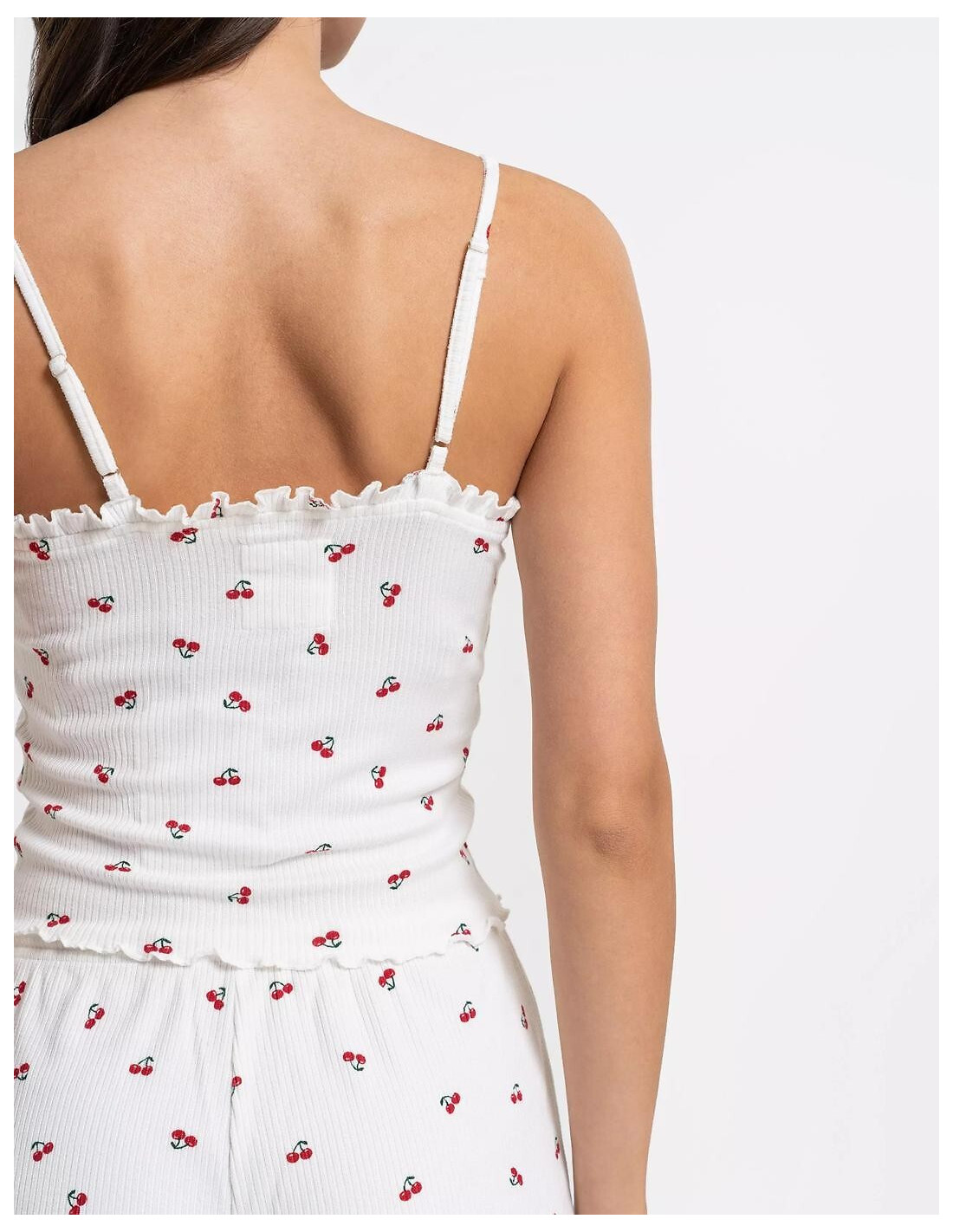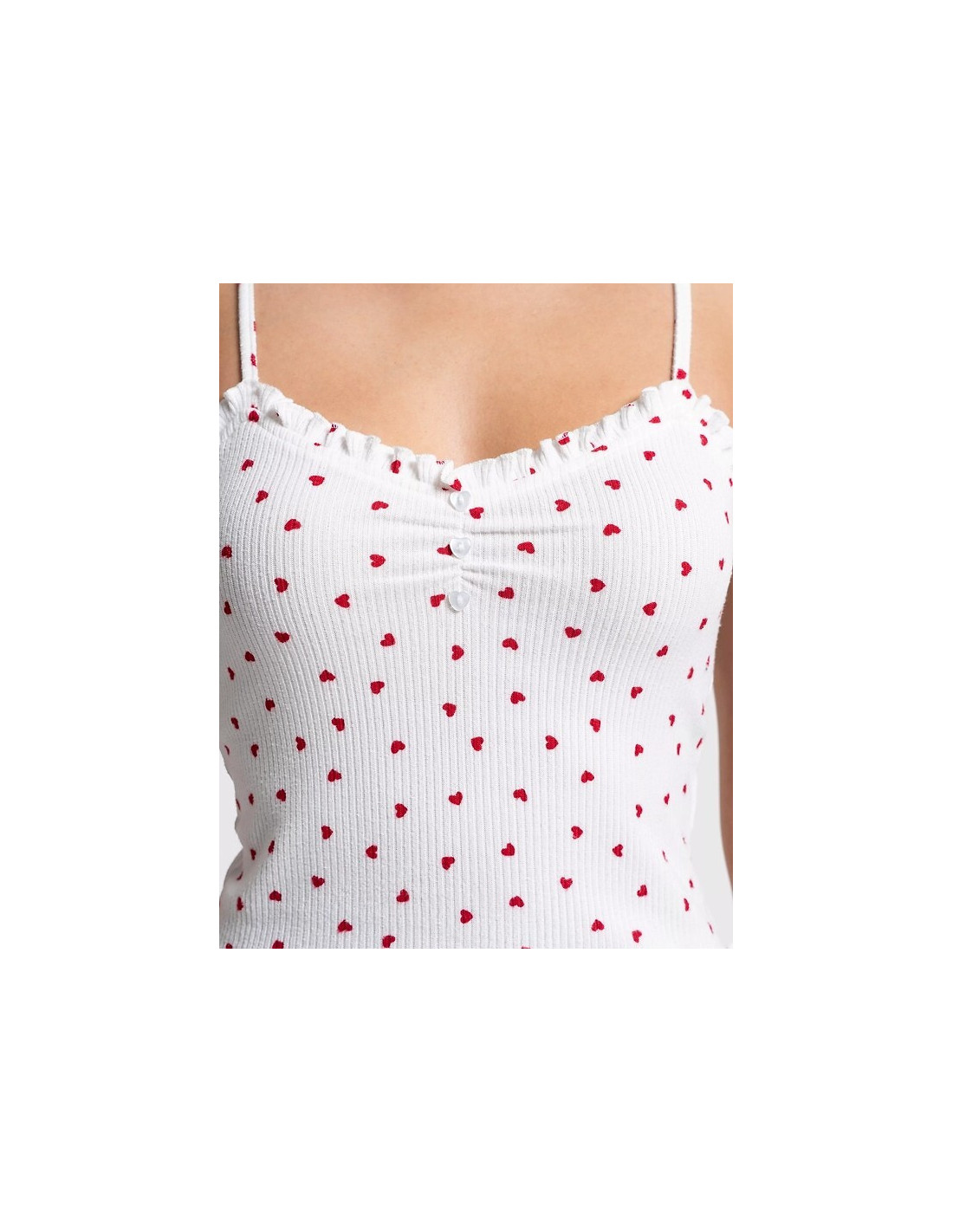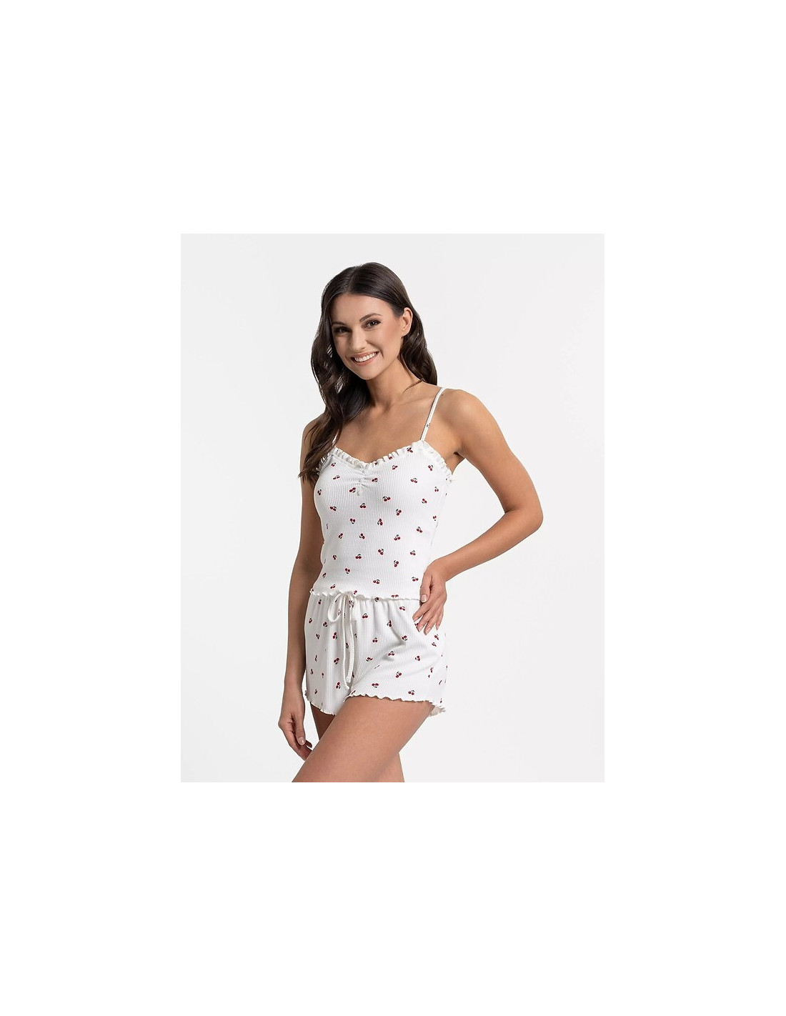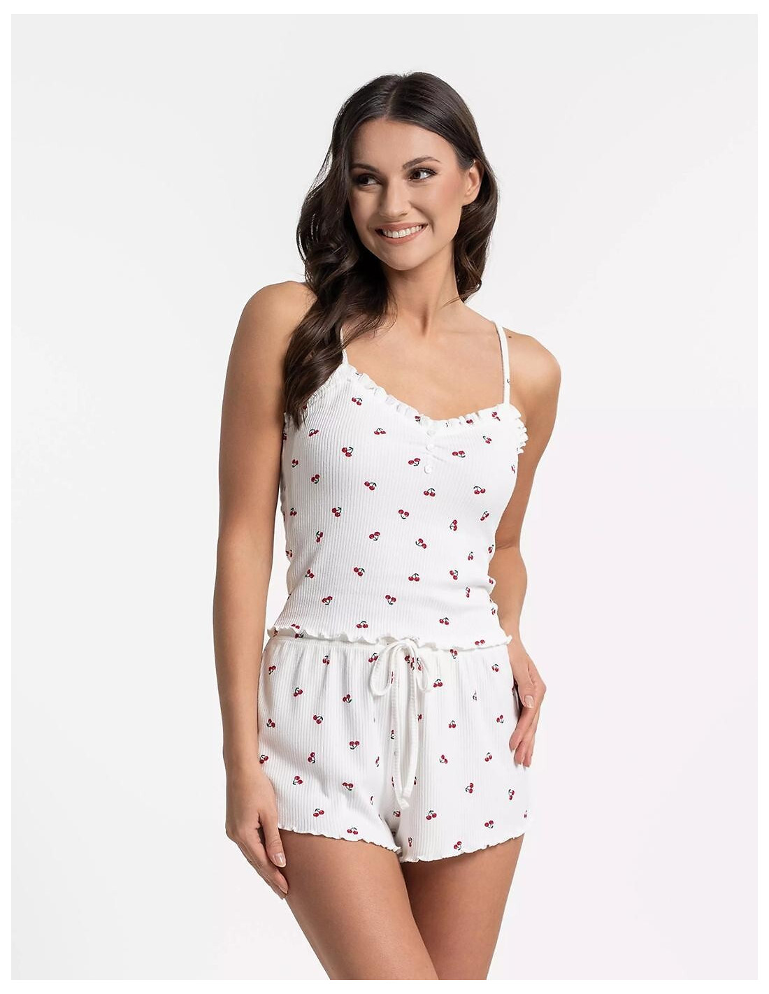 Letnia piżama damska - koszulka na ramiączkach - struktura dzianiny w drobny prążek - spodenki krótkie - print w serduszka - pakowana w foliowy woreczek