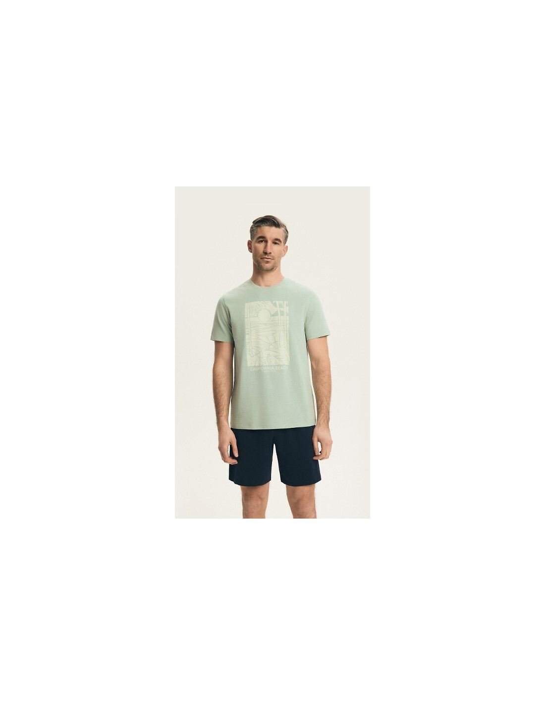 Bawełniana piżama męska - koszulka z krótkim rękawem - dekolt okrągły - z przodu nadruk - spodenki jednolite, długość do kolan - w pasie elastyczna gumka