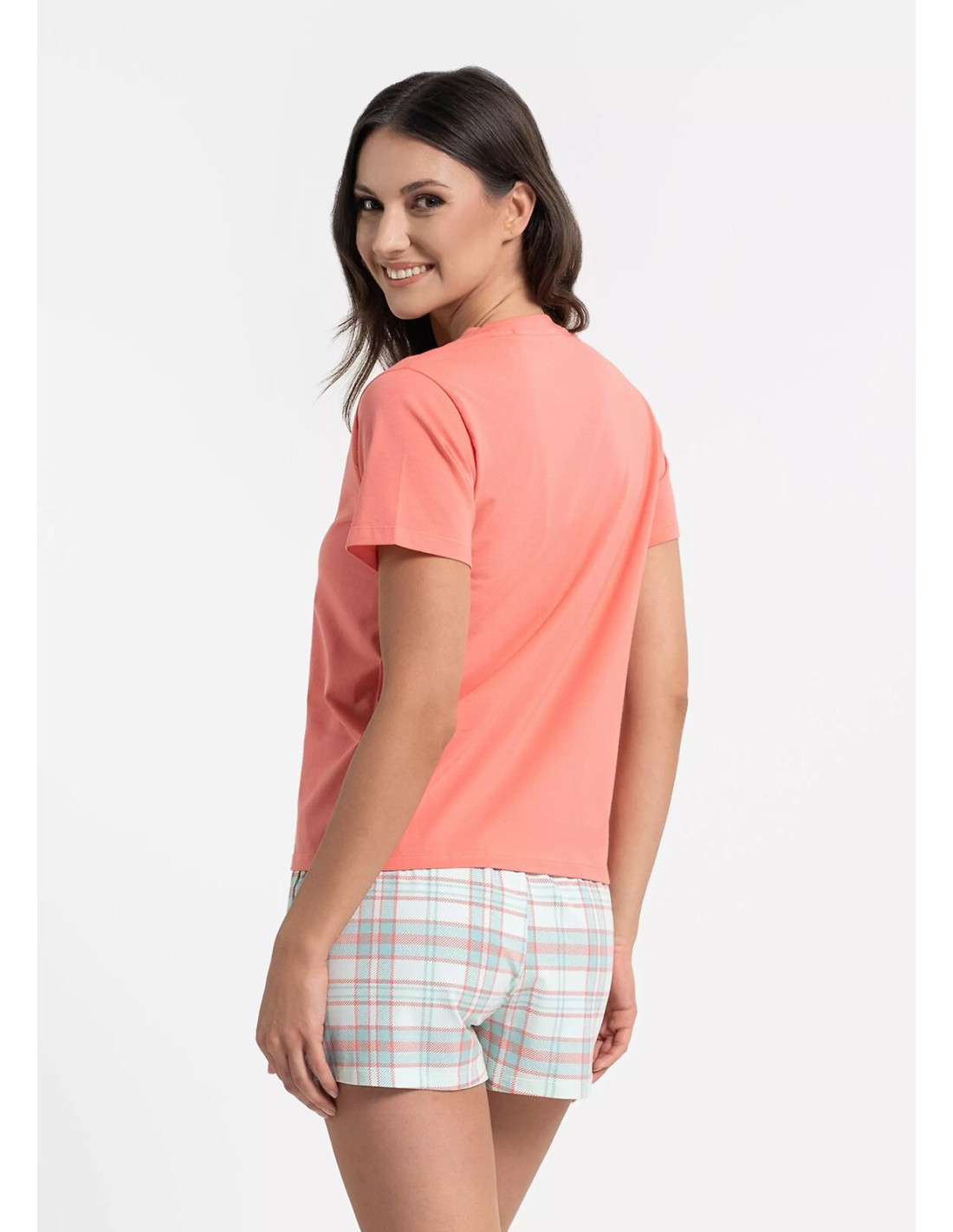 Piżama damska - wysoka jakość bawełny - koszulka z krótkim rękawem - w komplecie krótkie spodenki - wzór w kratkę - na biodrach wygodne kieszenie