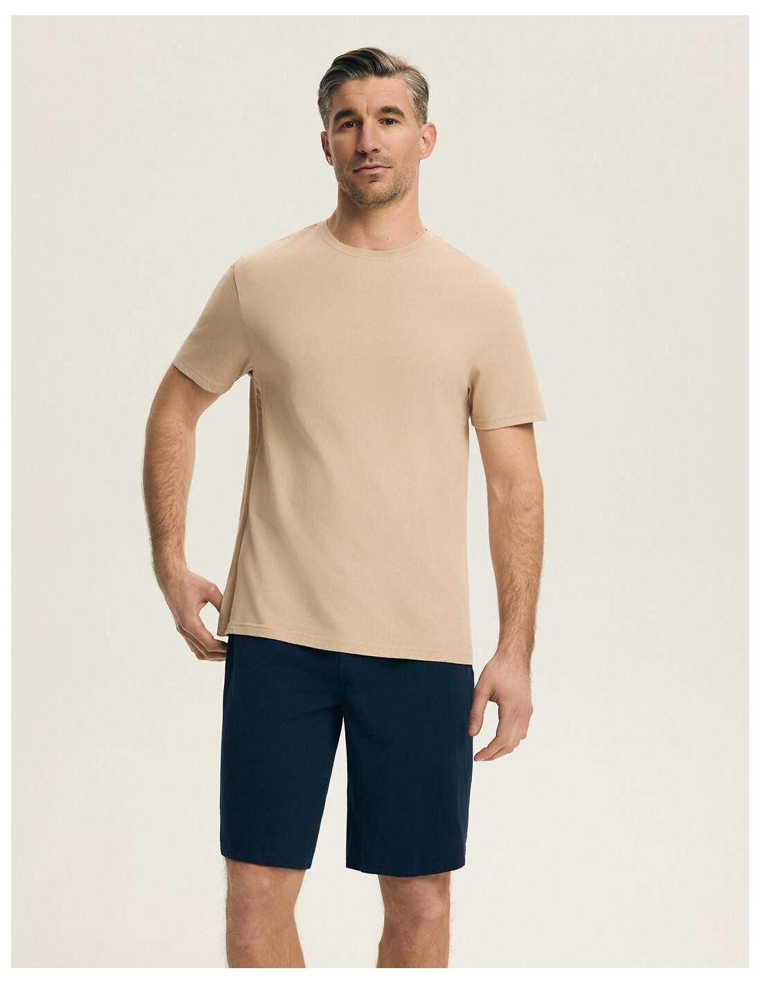 Bawełniana piżama męska - koszulka jednolita, z dzianiny - półokrągły dekolt - krótkie spodenki - długość do kolan - w pasie gumka z logo marki