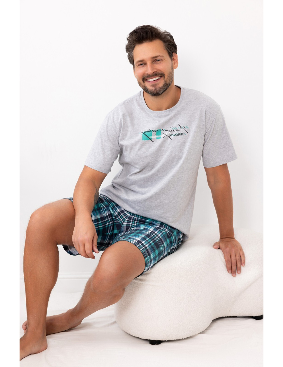 Bawełniana piżama męska - koszulka z krótkim rękawem - krótkie spodenki - w pasie gumka obszyta bawełną
