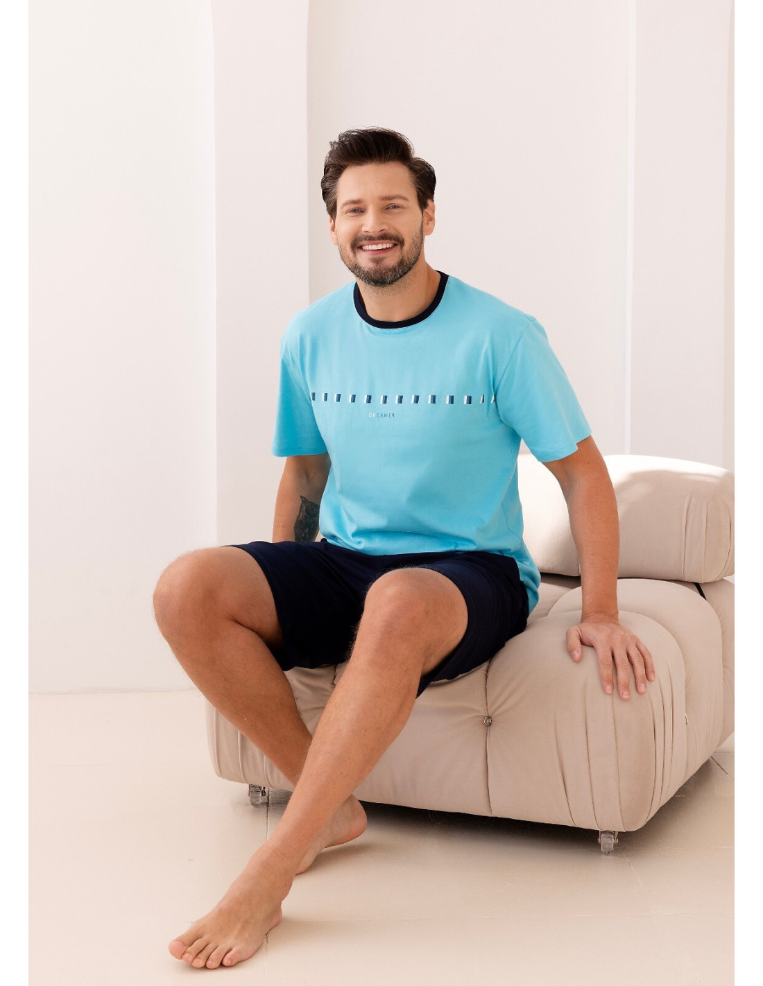 Bawełniana piżama męska - koszulka z krótkim rękawem - krótkie spodenki - w pasie gumka obszyta bawełną