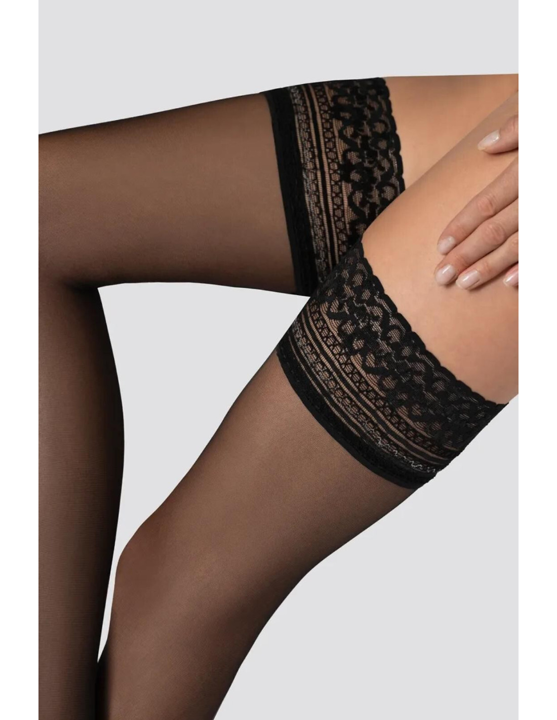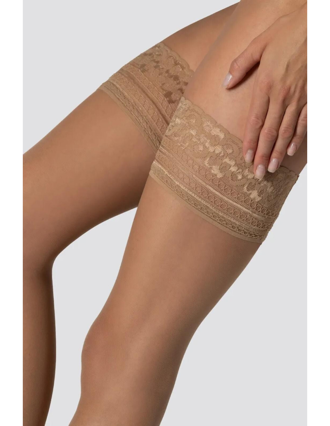 Savadarbės kojinės 15 den - su dekoratyviniais nėriniais ant silikono - be pažymėtos pirštų dalies - užtikrina dėvėjimo komfortą