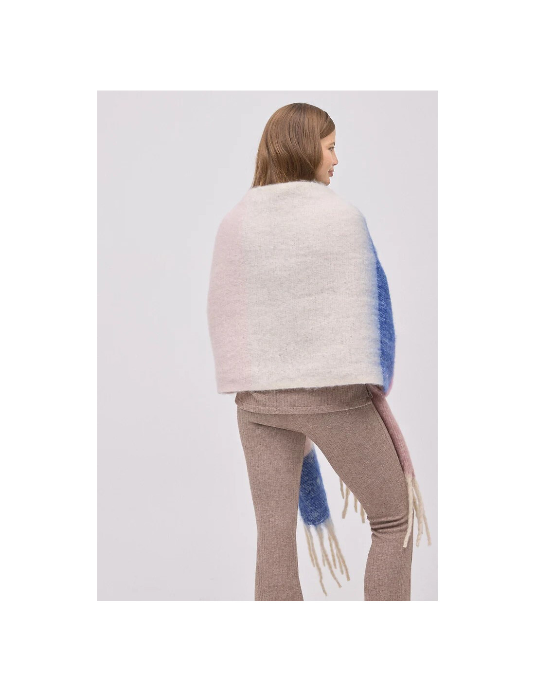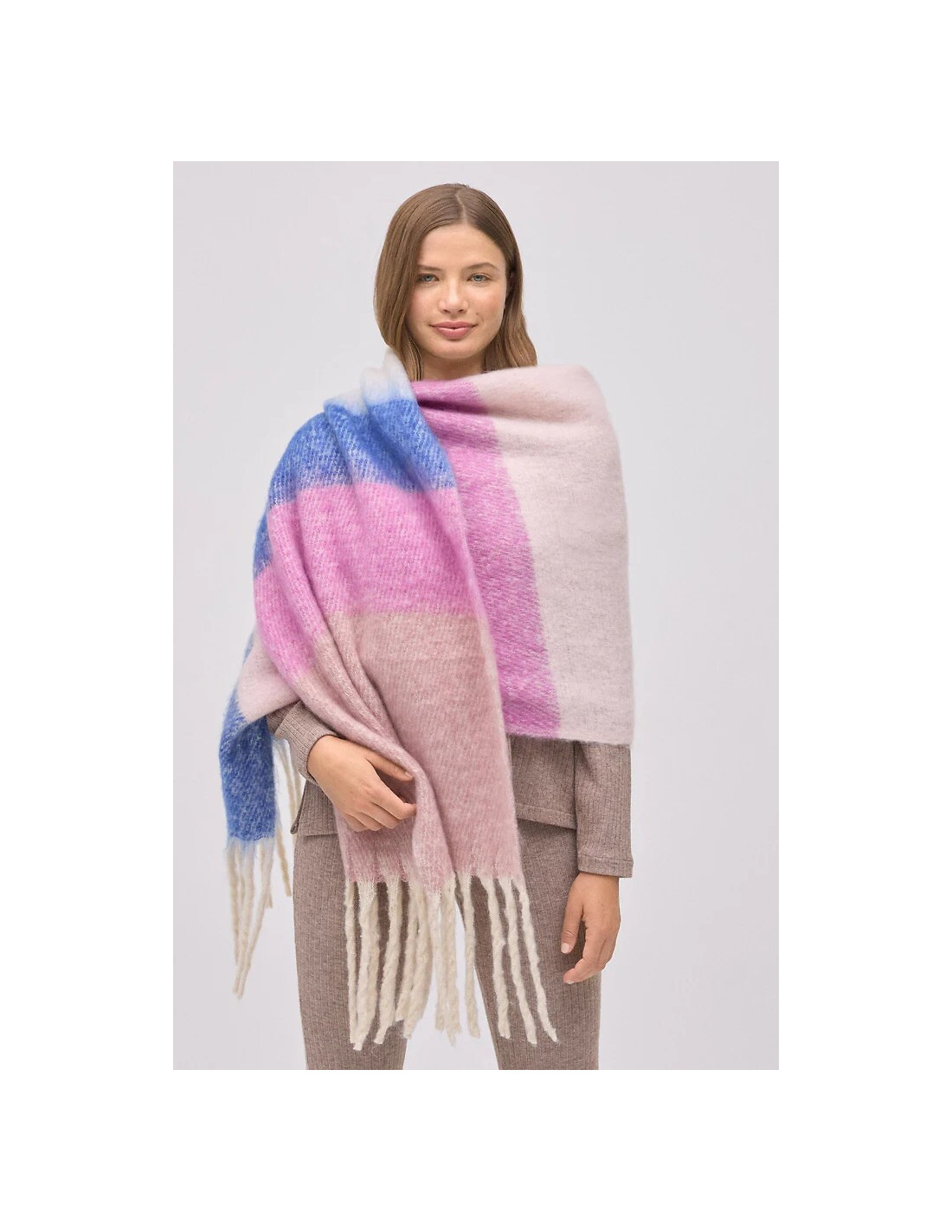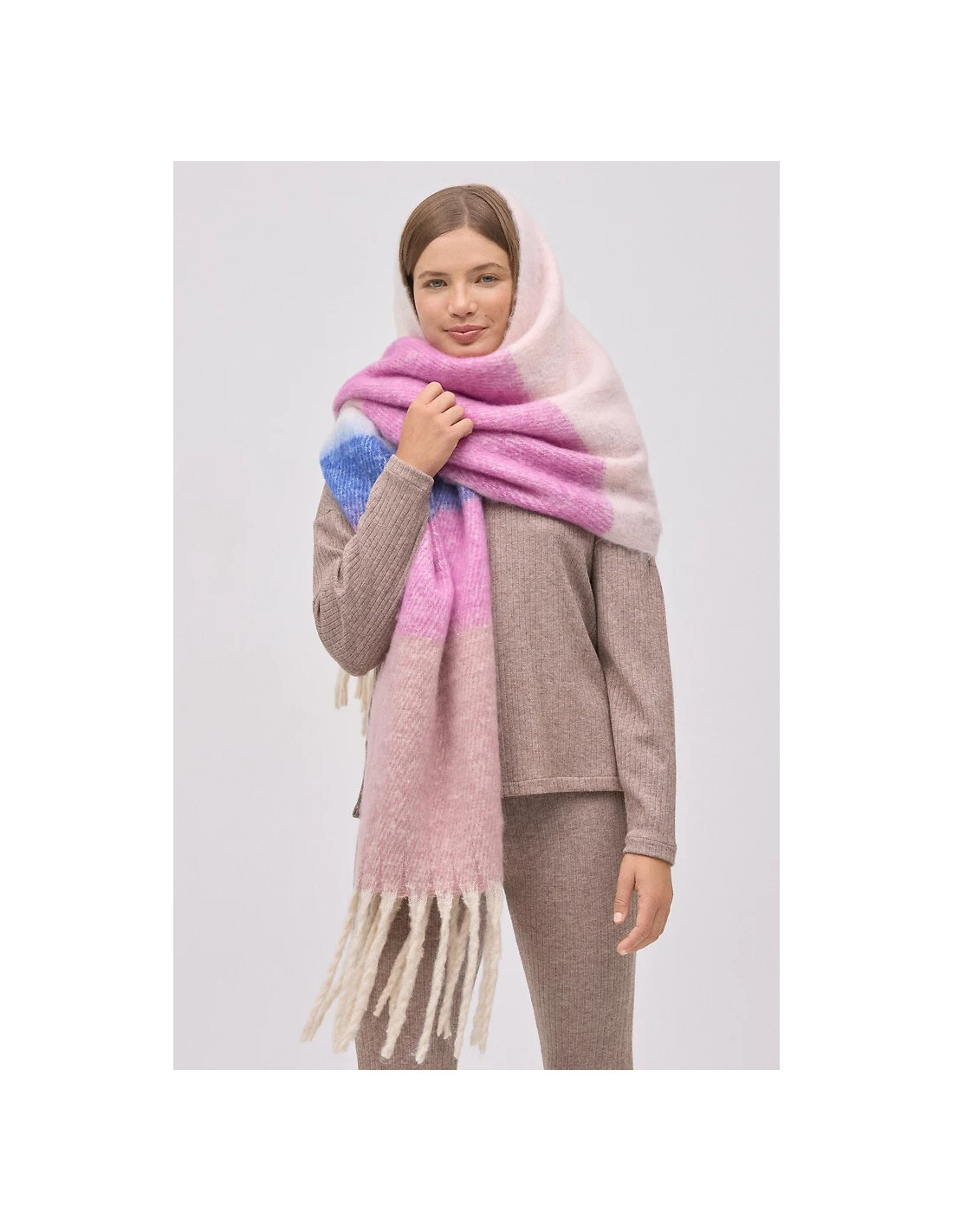 Moteriškas šalikas - šiltas, minkštas trikotažas - su plonais plaukais - užbaigtas kutais