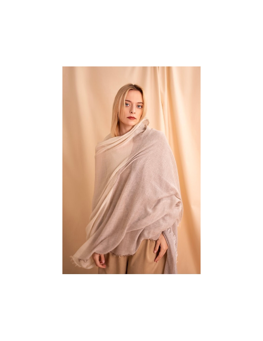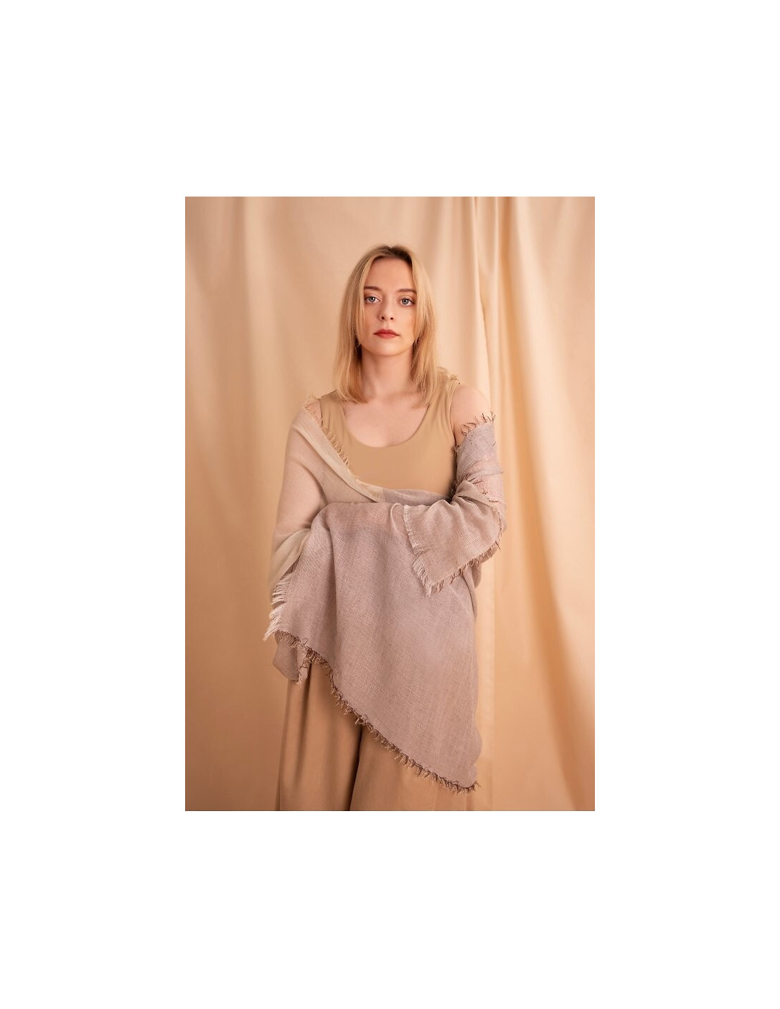 Delikatny, zwiewny szal - stonowana, pastelowa kolorystyka - lekki dodatek, kuris subtelnie uzupełnia stylizacją - wykończony cienkimi frędzelkami, prezentuje się lekko i naturalnie - miękka, przewiewna tkanina sprawia, że szal dobrze sprawdza się w cieplejsze dni i lengvai dopasowuje do różnych zestawów - od miejskich po wakacyjne