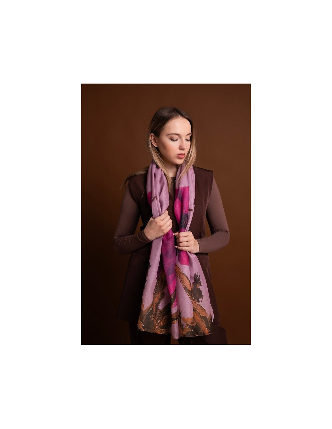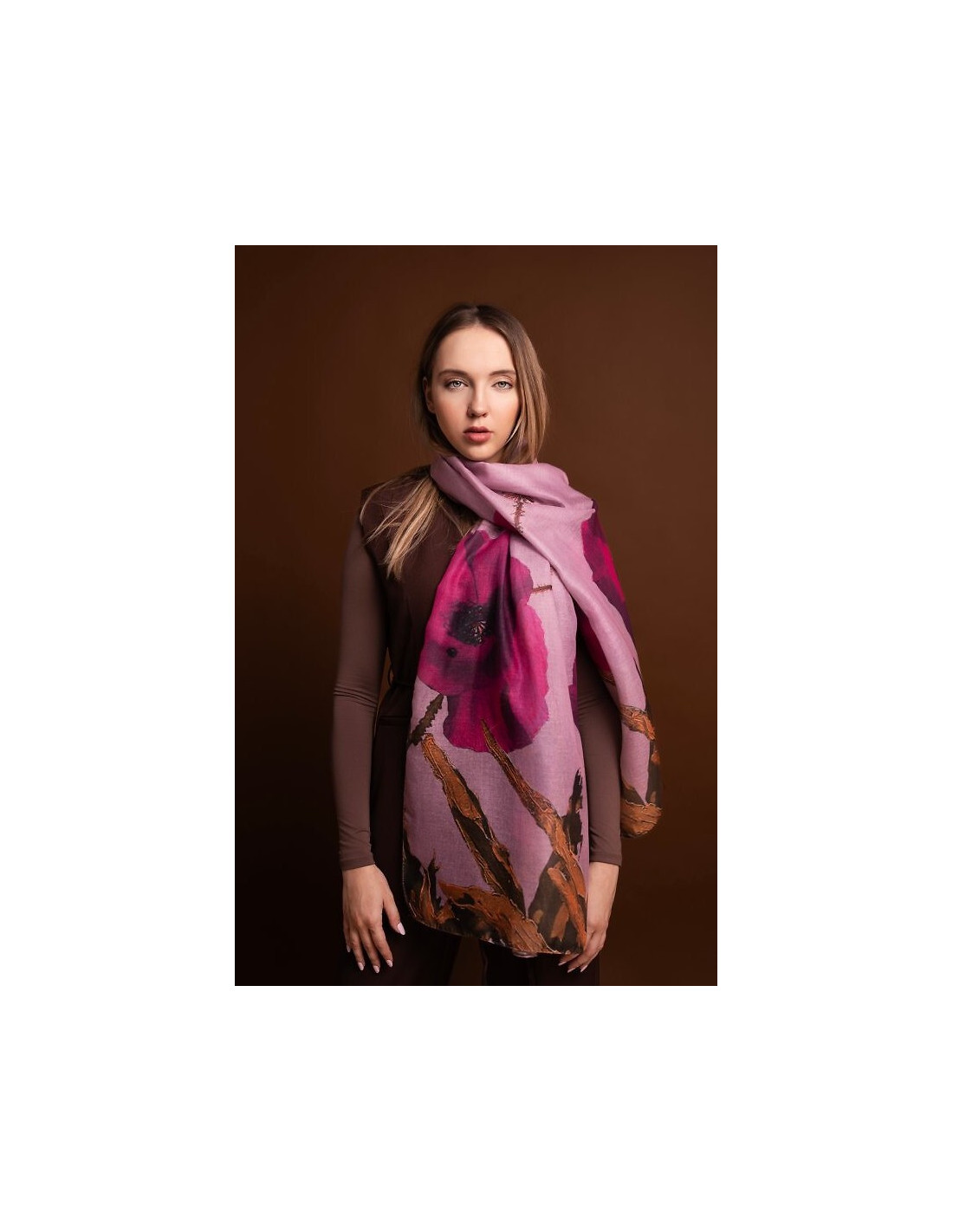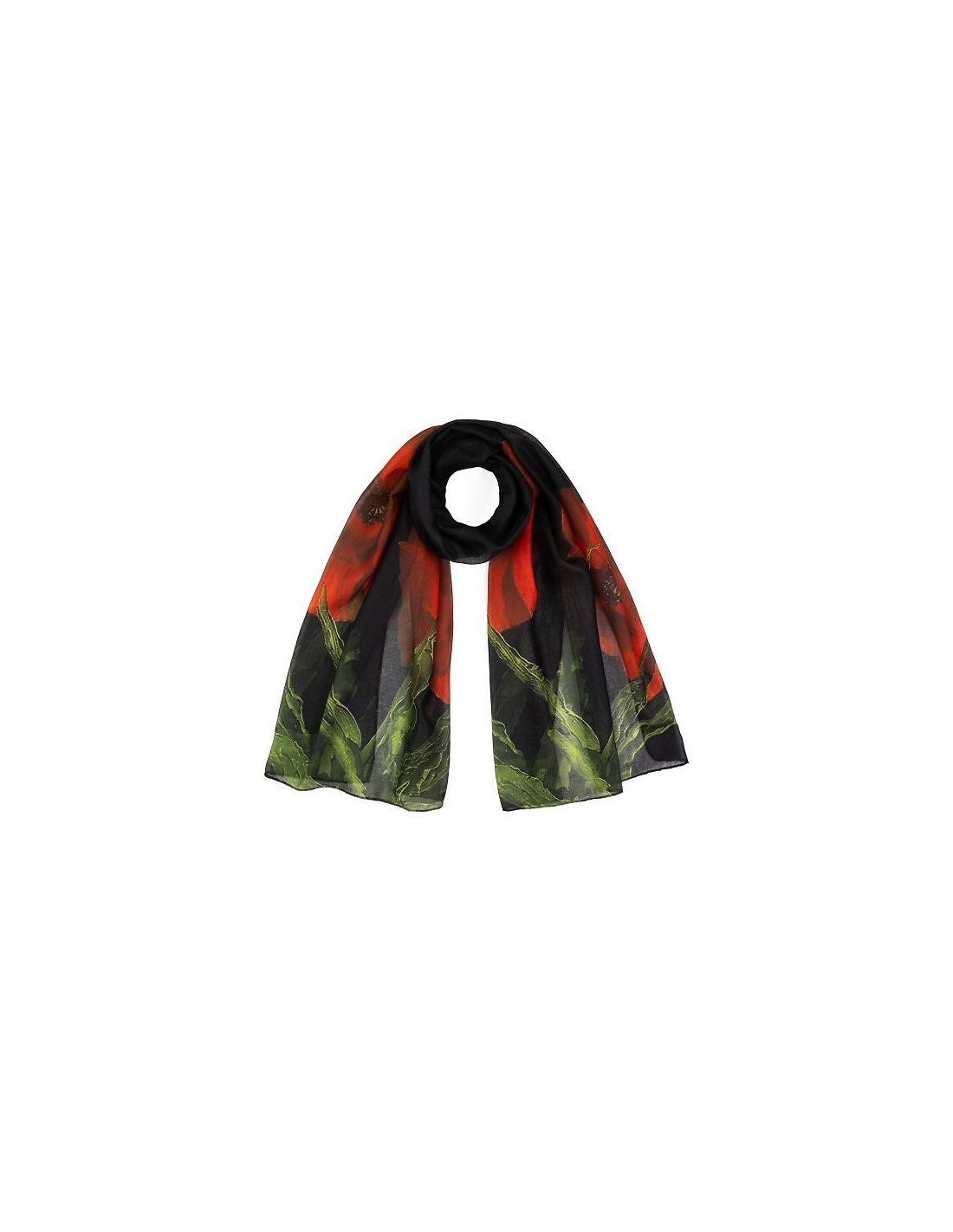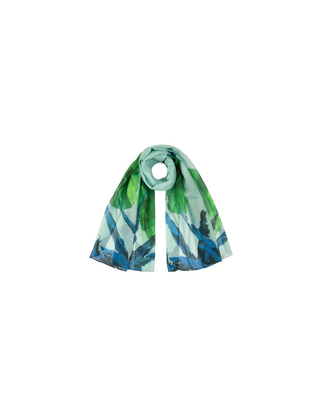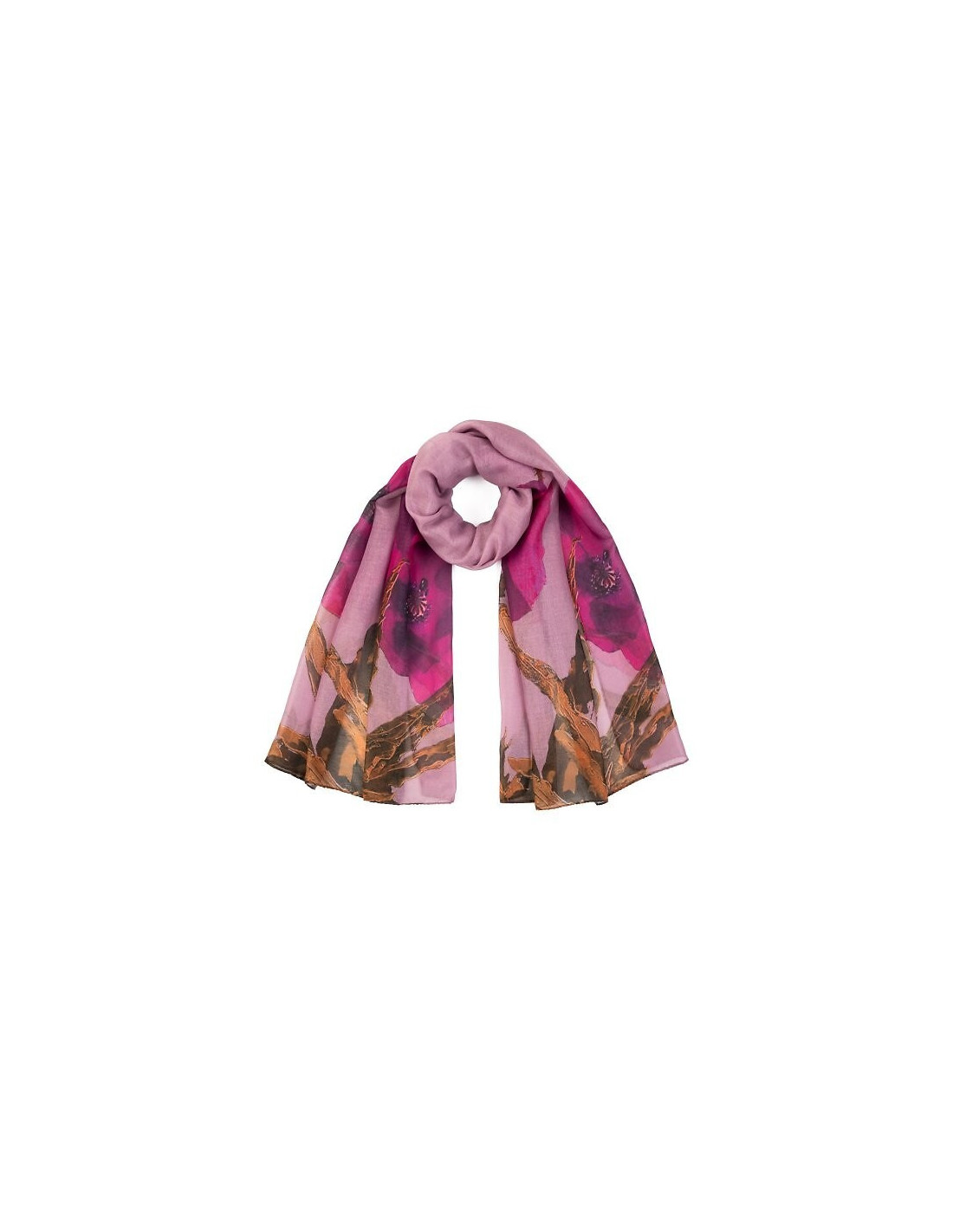 Cienki szal w kwiaty - wprowadza do stylizacji subtelny florystyczny akcent - wykonany z miękkiego dla skóry materiału - delikatnie otula szyję lub ramiona - ilgis 175 cm, plotis 70 cm