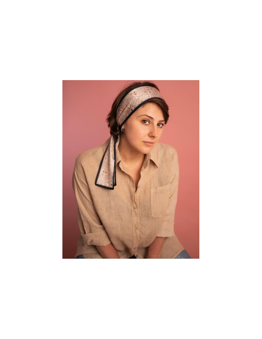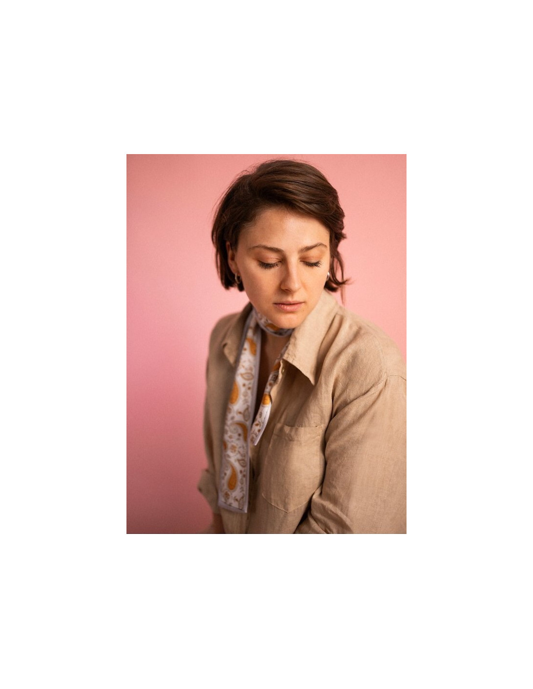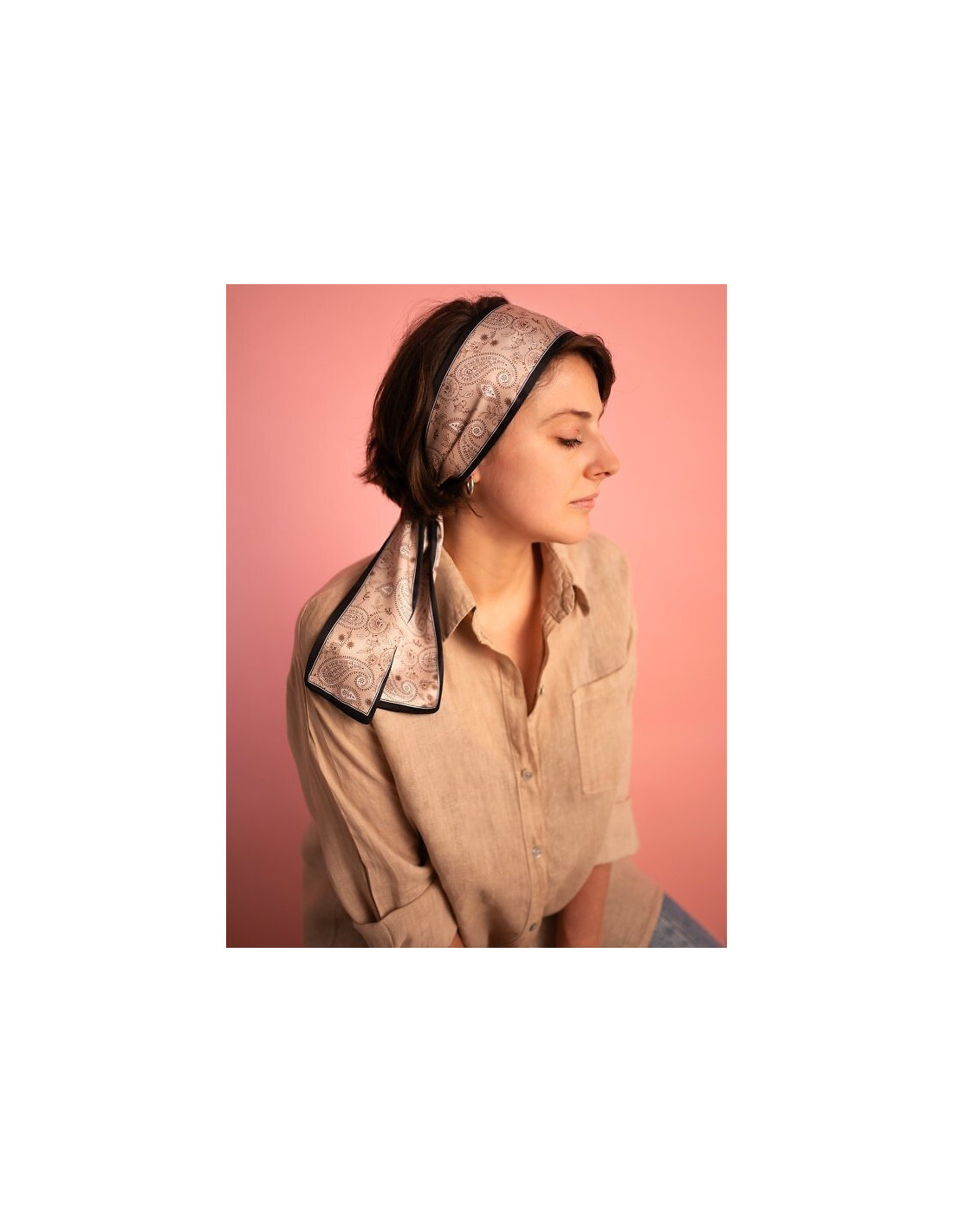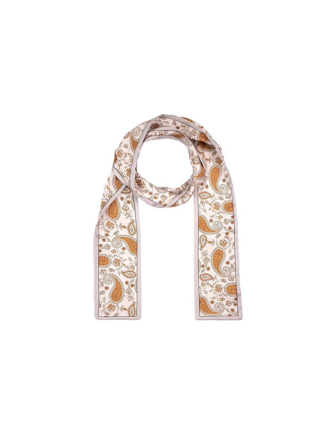 Delikatna satynowa apaszka damska - w delikatnych kolorach - subtelny dodatek, kuris podkreśli charakter każdej stylizacji - orientalny wzór paisley prideda jos eleganciją. - miękki i przyjemny w dotyku materiał pozwala nosić ją komfortowo na głowie lub zawiązać na szyi