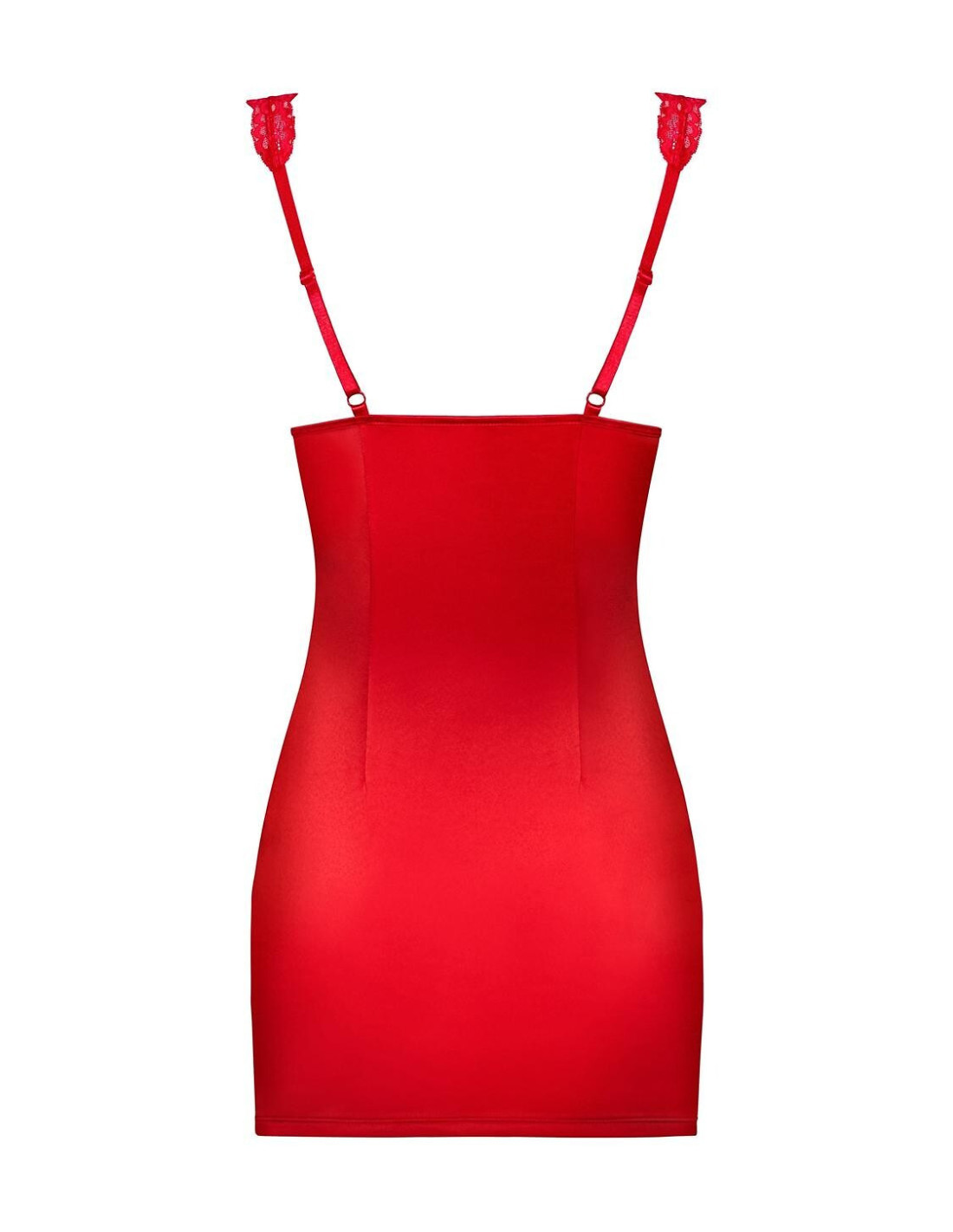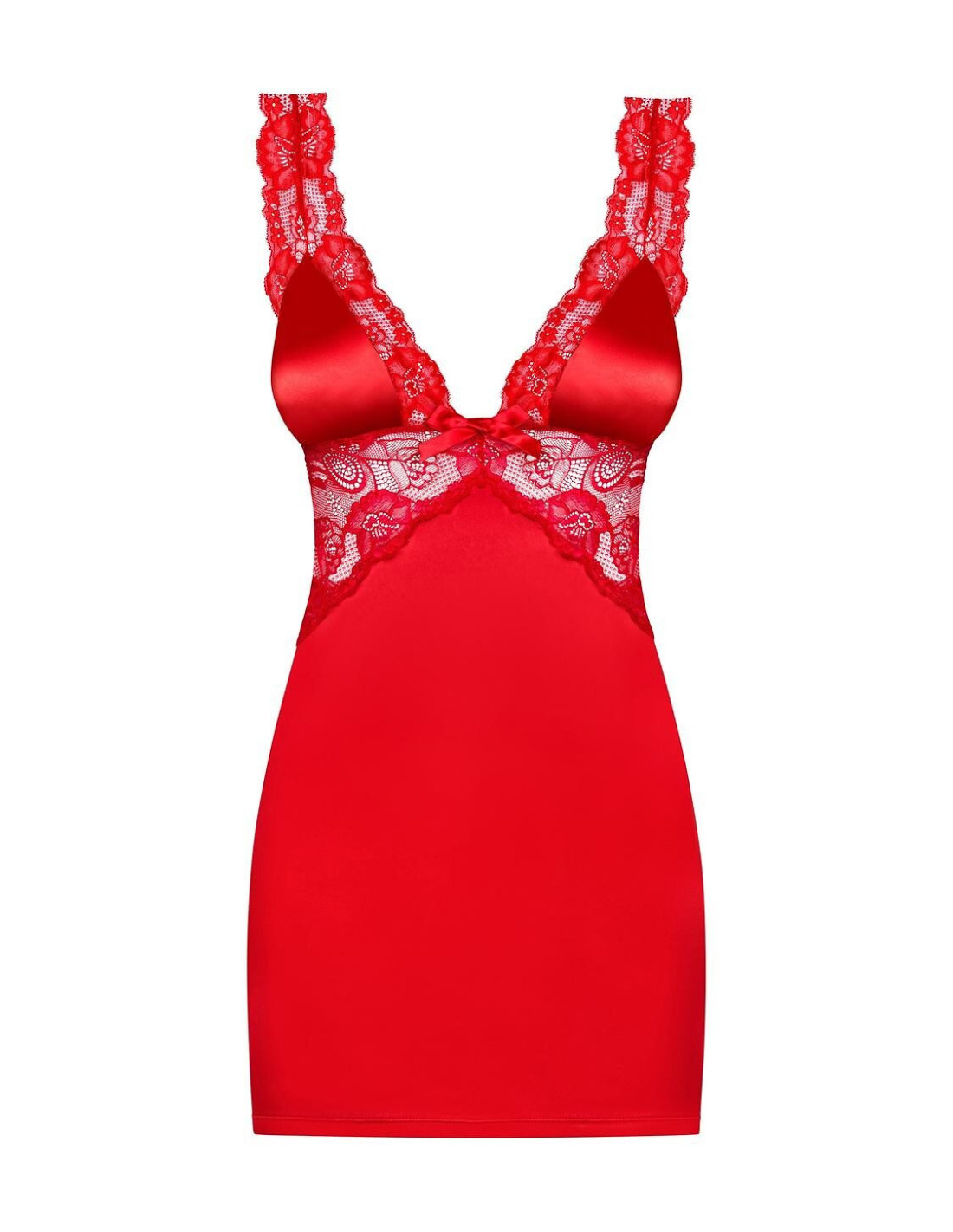 Moteriški chimeriniai marškinėliai - iš raudono atlaso ir ažūrinių gėlių nėrinių - reguliuojamos petnešėlės - į komplektą įeina stringai
