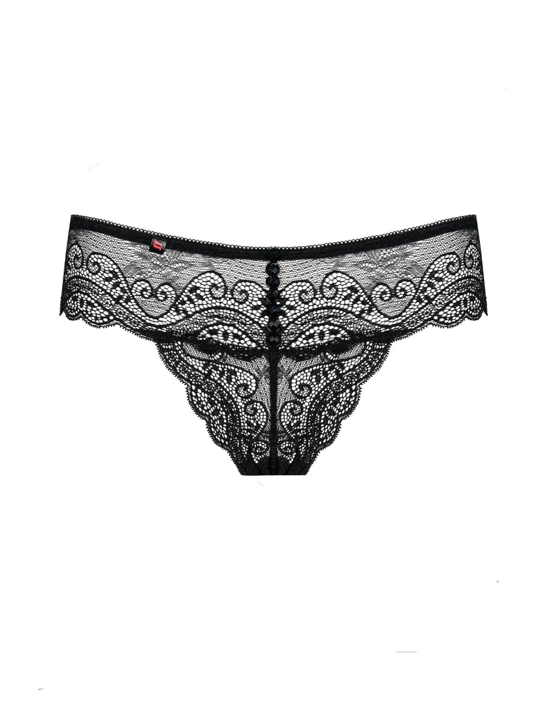 Įspūdingi stringai - pagaminti iš gražių nėrinių - priekyje puošti blizgiais akmenimis - nugara su trikampio formos siūlėmis, pabrėžiančiomis sėdmenis - subtilūs nėriniai puikiai prisitaiko prie formų