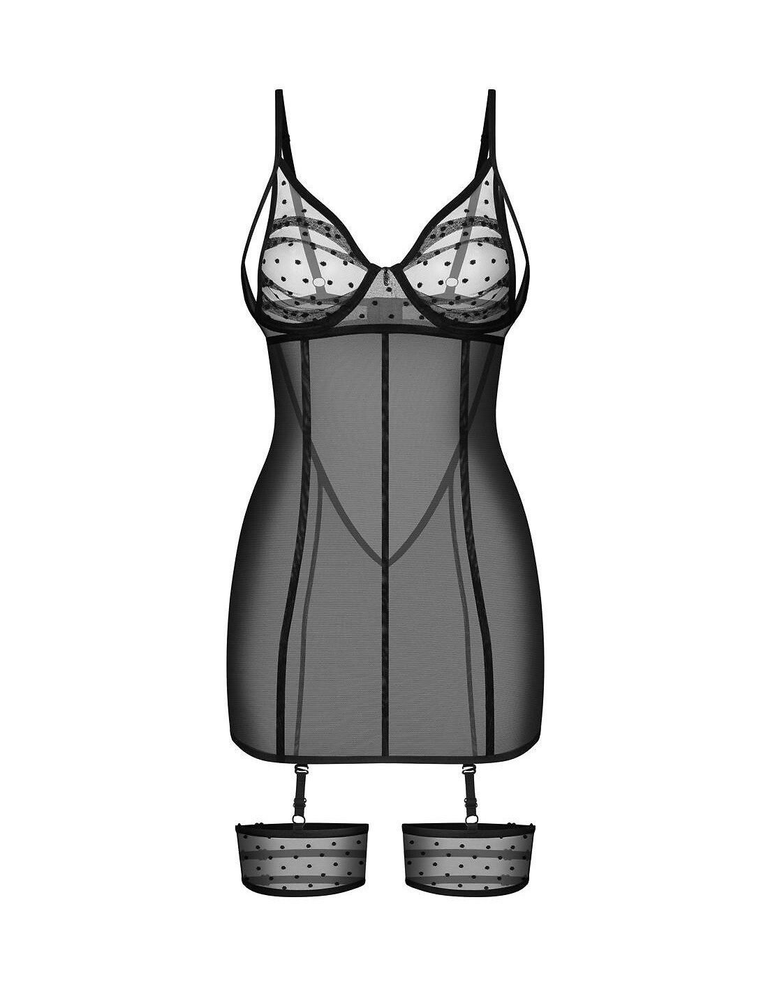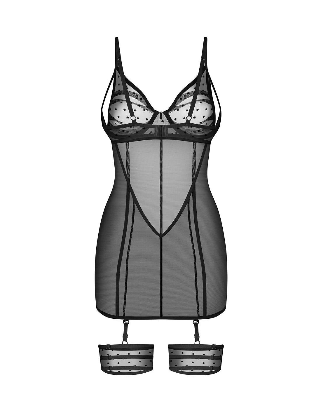 Trumpi naktinukai - aukštos kokybės elastingas tinklelis - vertikalios siūlės - minkštos mažų taškelių formos kaušeliai su pamušalu - reguliuojamos petnešėlės - atvira nugara su užsegimu - patrauklios nuimamos petnešėlės su reguliatoriais, kad puikiai priglustų - be kelnaičių