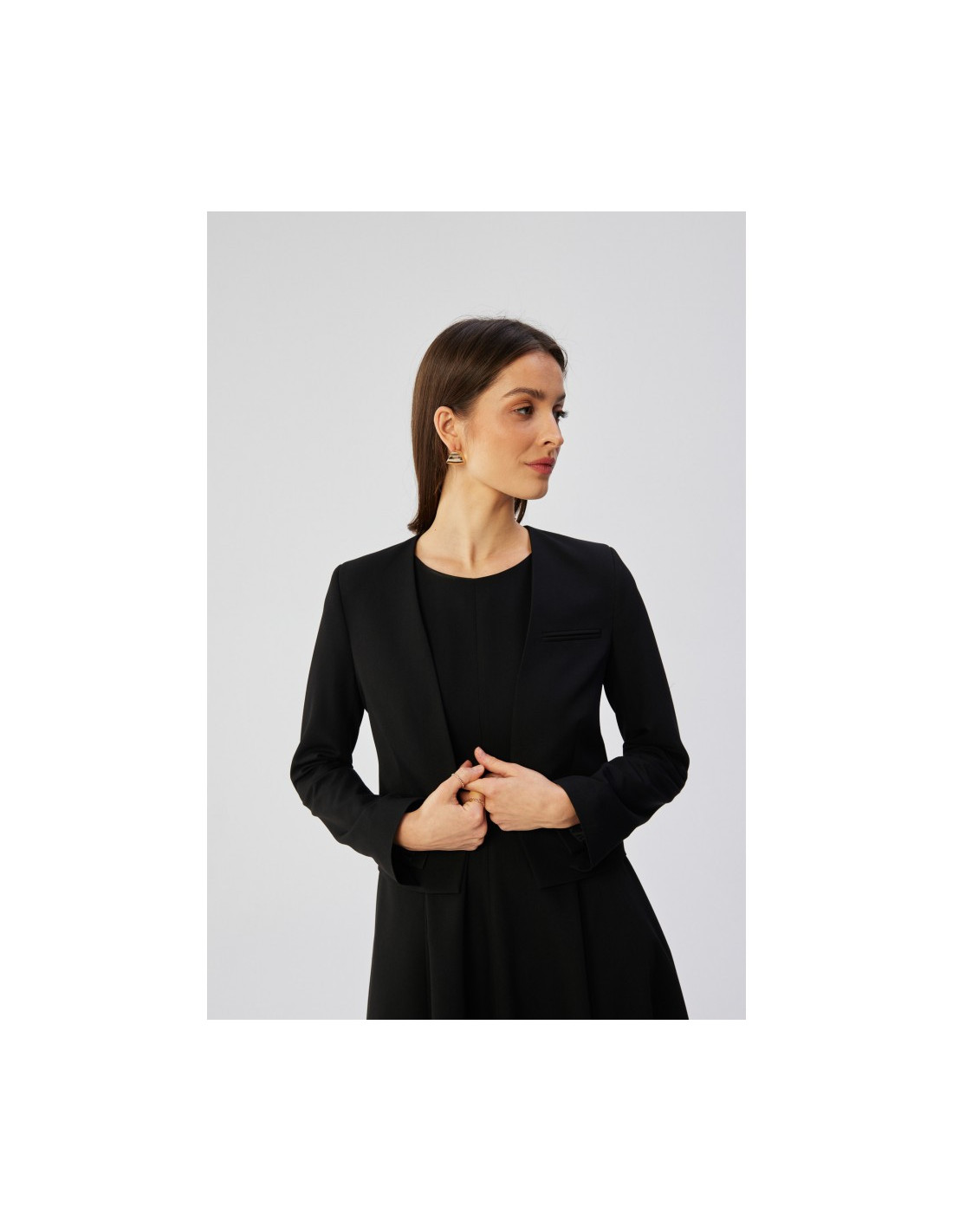 S368 Open front cropped blazer - black
