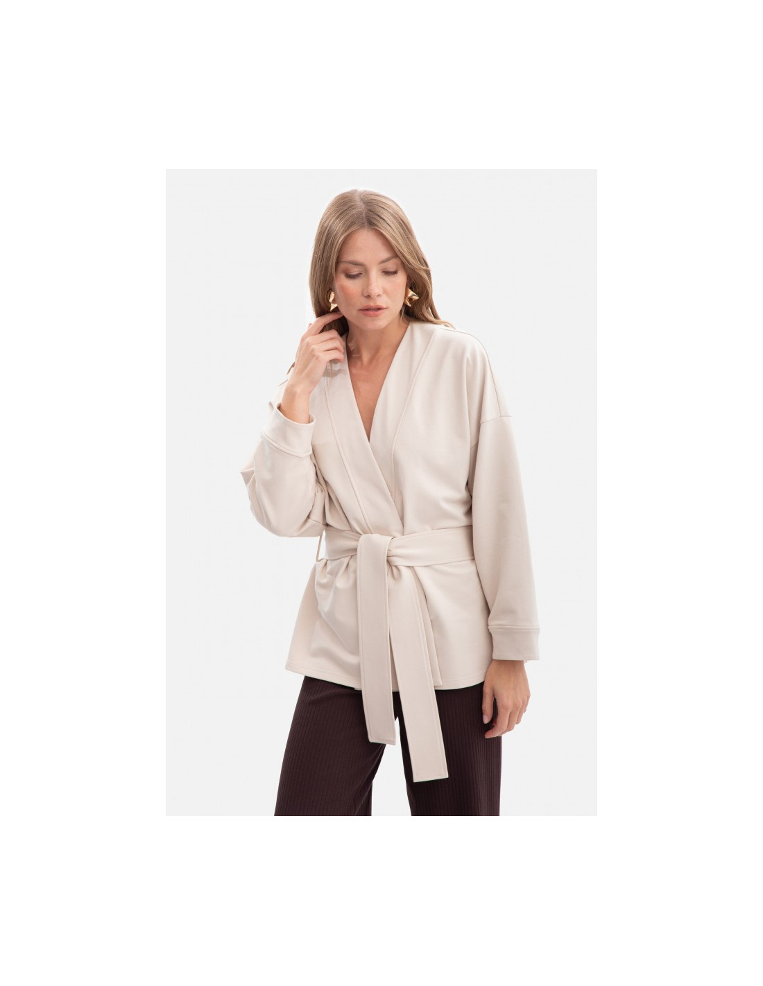 Kirpimas: laisvas, atviras - kimono su diržu