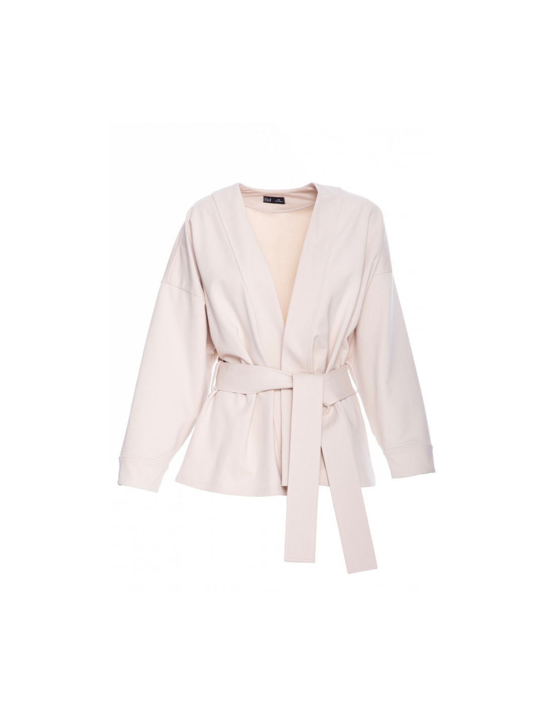 B297 Laisvas švarkas su diržu - smėlio spalvos